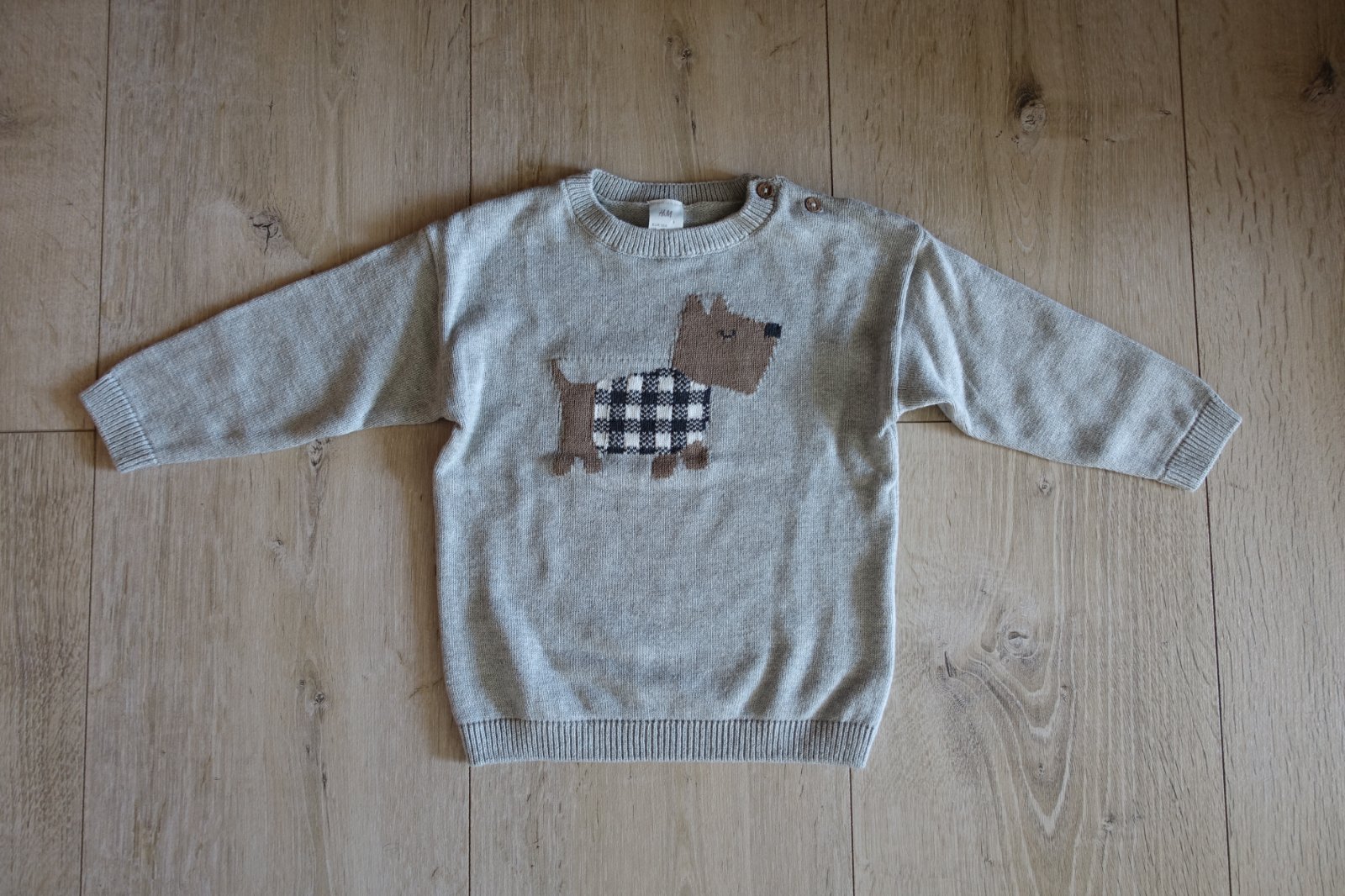 Predám prekrásny svetrík so psíkom vo veľkosti 104, ale sedí na veľkosť 98. Riaďte sa prosím rozmermi. Je stredne hrubý, nie je zateplený. Pri krku sa dajú gombičky rozopnúť a ľahšie sa prevlečie hlavička. Mali sme ho 1x, ale je vo veľmi peknom stave. Nemá žmolky, ani fľaky. Celková dĺžka je 38,5 cm. (V08)
