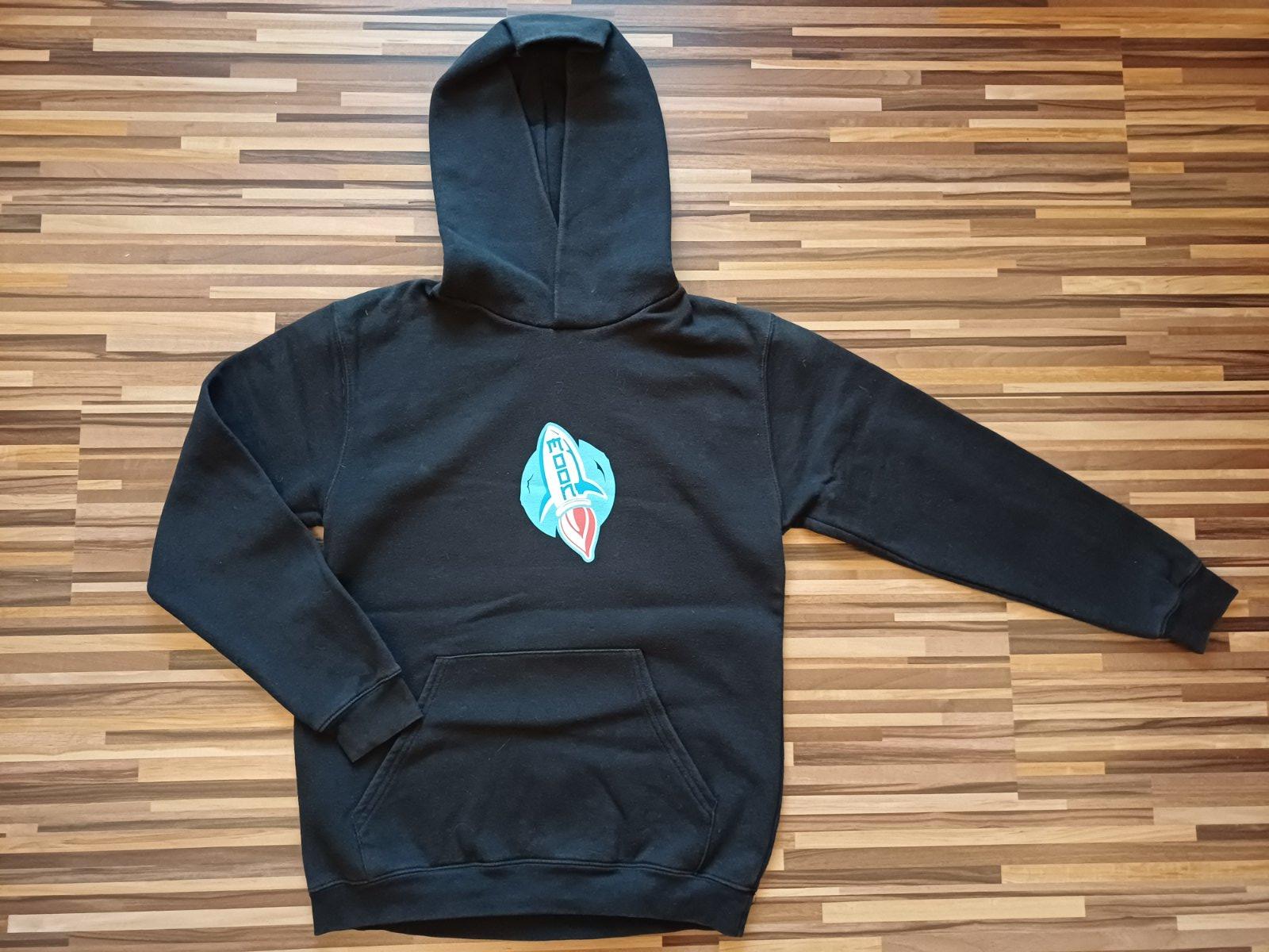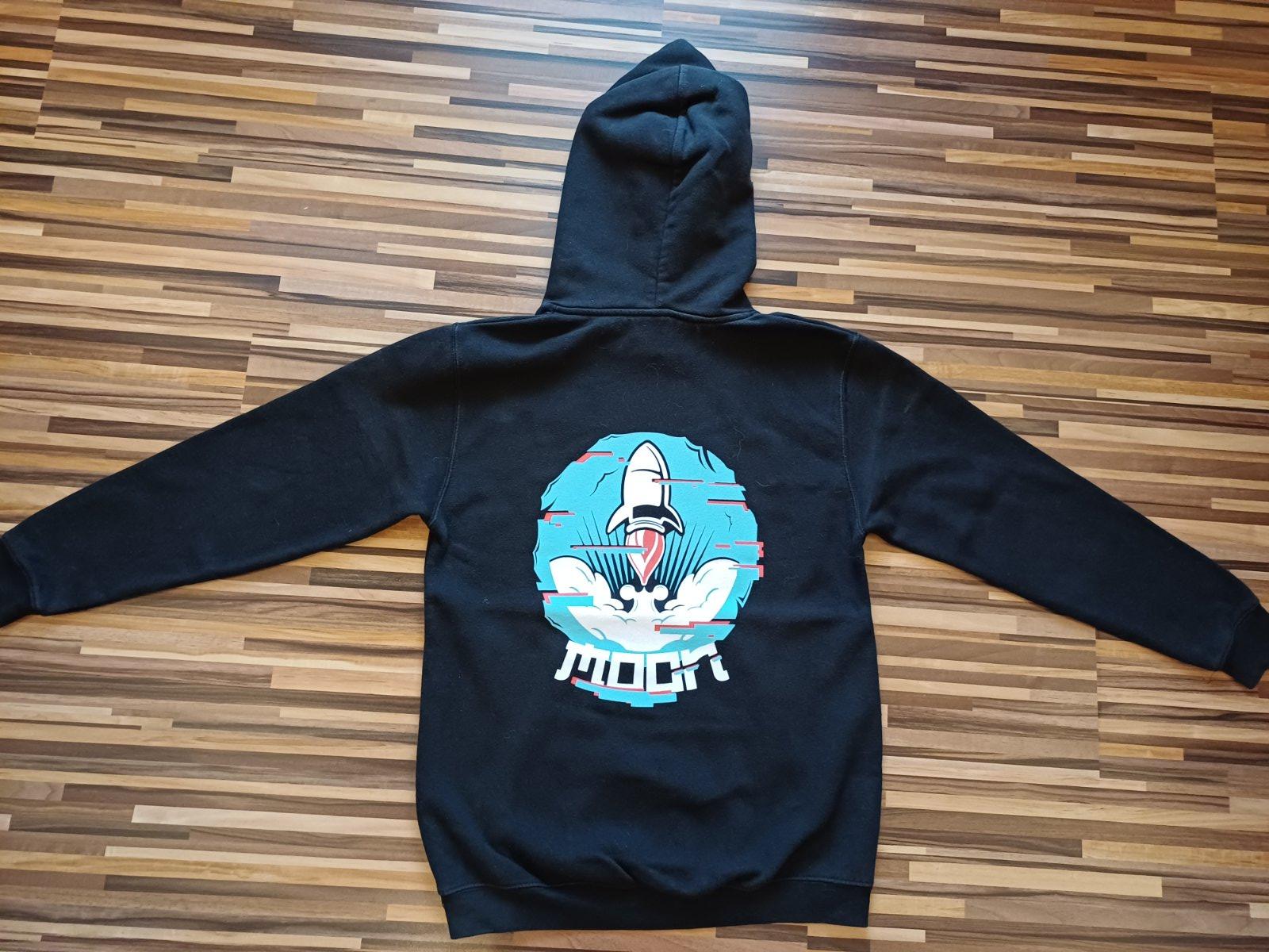 Chlapčenská mikina merch MOON, veľ. zodpovedá 164 - pozri rozmery. Obliekanie cez hlavu, s kapucňou, s klokankovým vreckom vpredu. Rozmery: dĺžka od ramena po spodný okraj 59 cm, šírka cez prsia 45 cm, dĺžka rukáva 54 cm.
