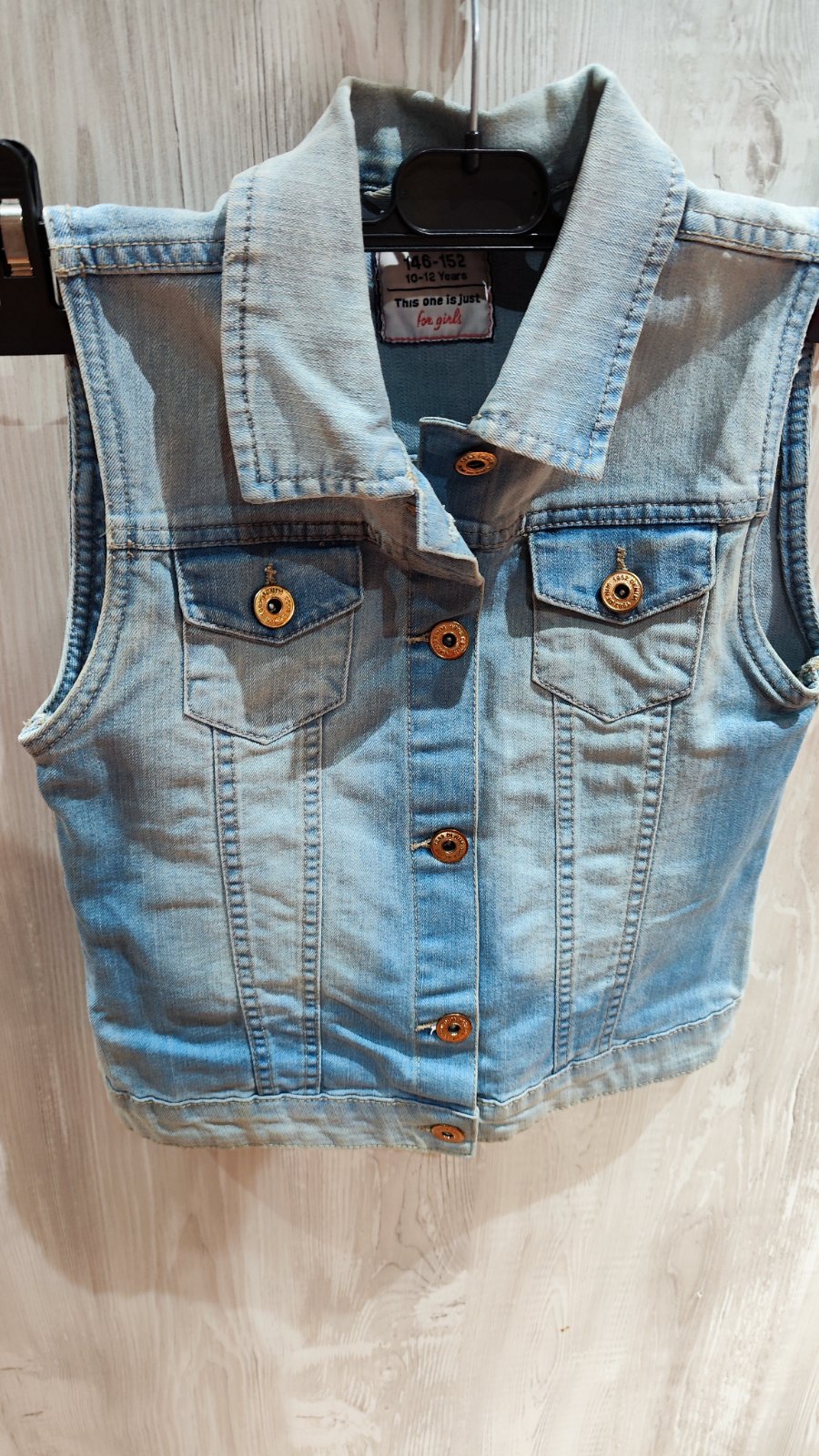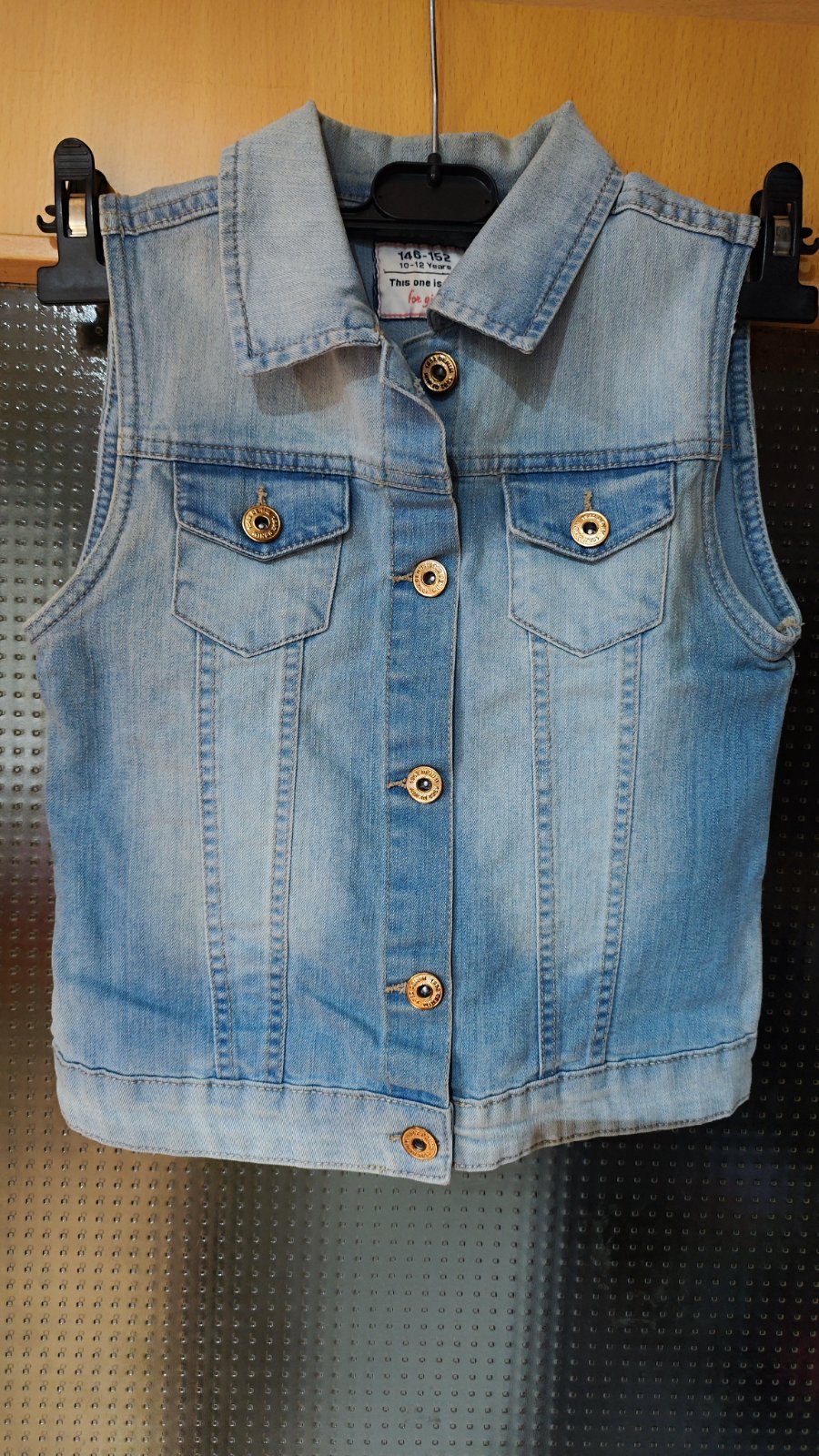 Krásna bledunko modrá riflova vesta (na fotkách to až tak zachytiť nešlo), kupovana v detskom oddelení ale sedí na dámske XXS- XS. Triedim šatník tak posúvam za novú cenu + poštovné prevodom alebo osobne v Ba.