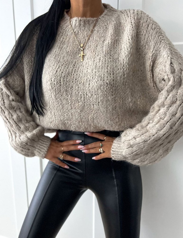 Béžový sveter Cassandra je zaujímavo pletený kúsok do Vášho šatníka. Na prednej časti má hladký vzor, ale rukávy sú ozdobené výraznejším pletením. Vrkočový teda pletený vzor pôsobí štýlovo a nadčasovo. Sveter zahreje a je príjemný na nosenie počas celého dňa.