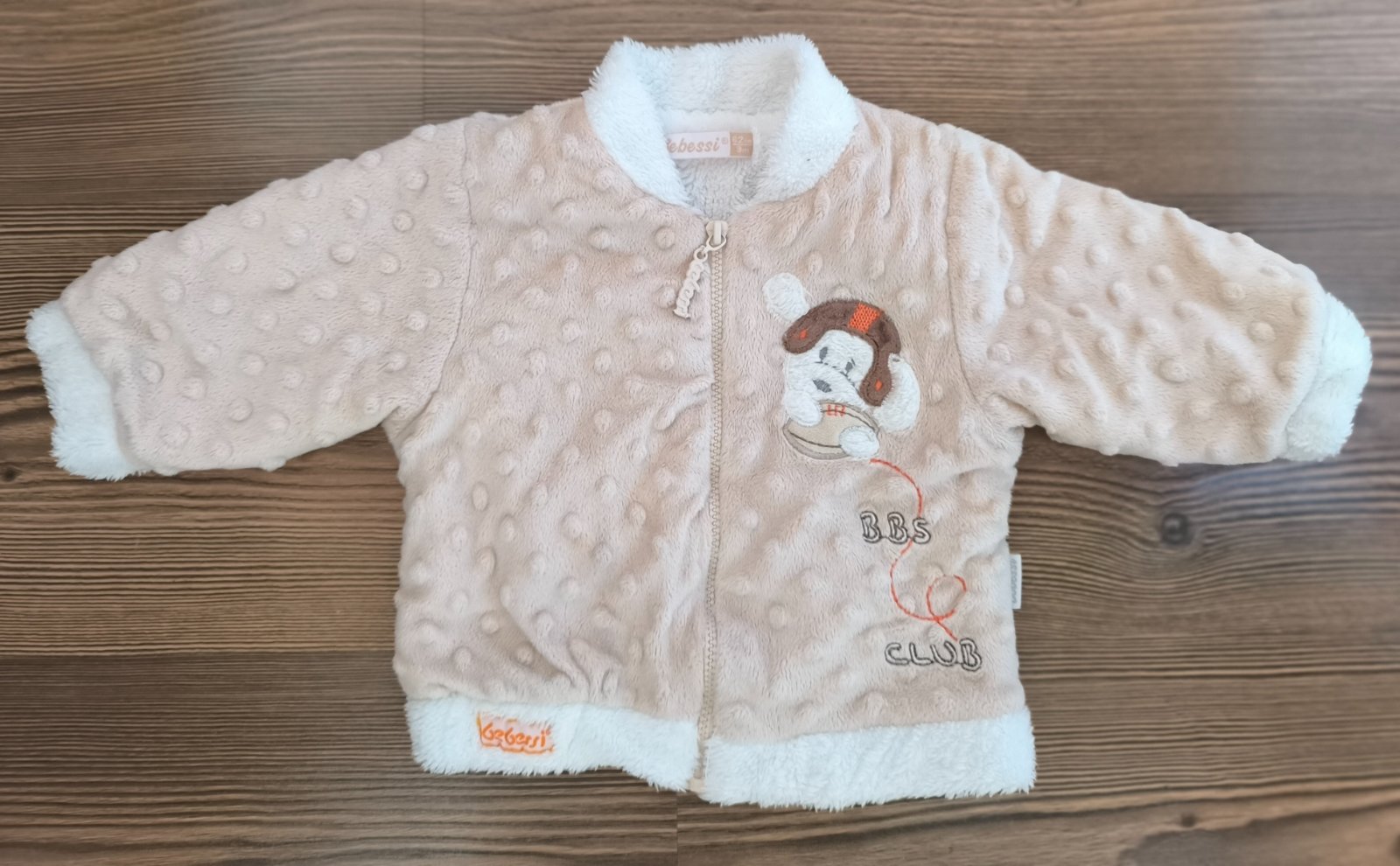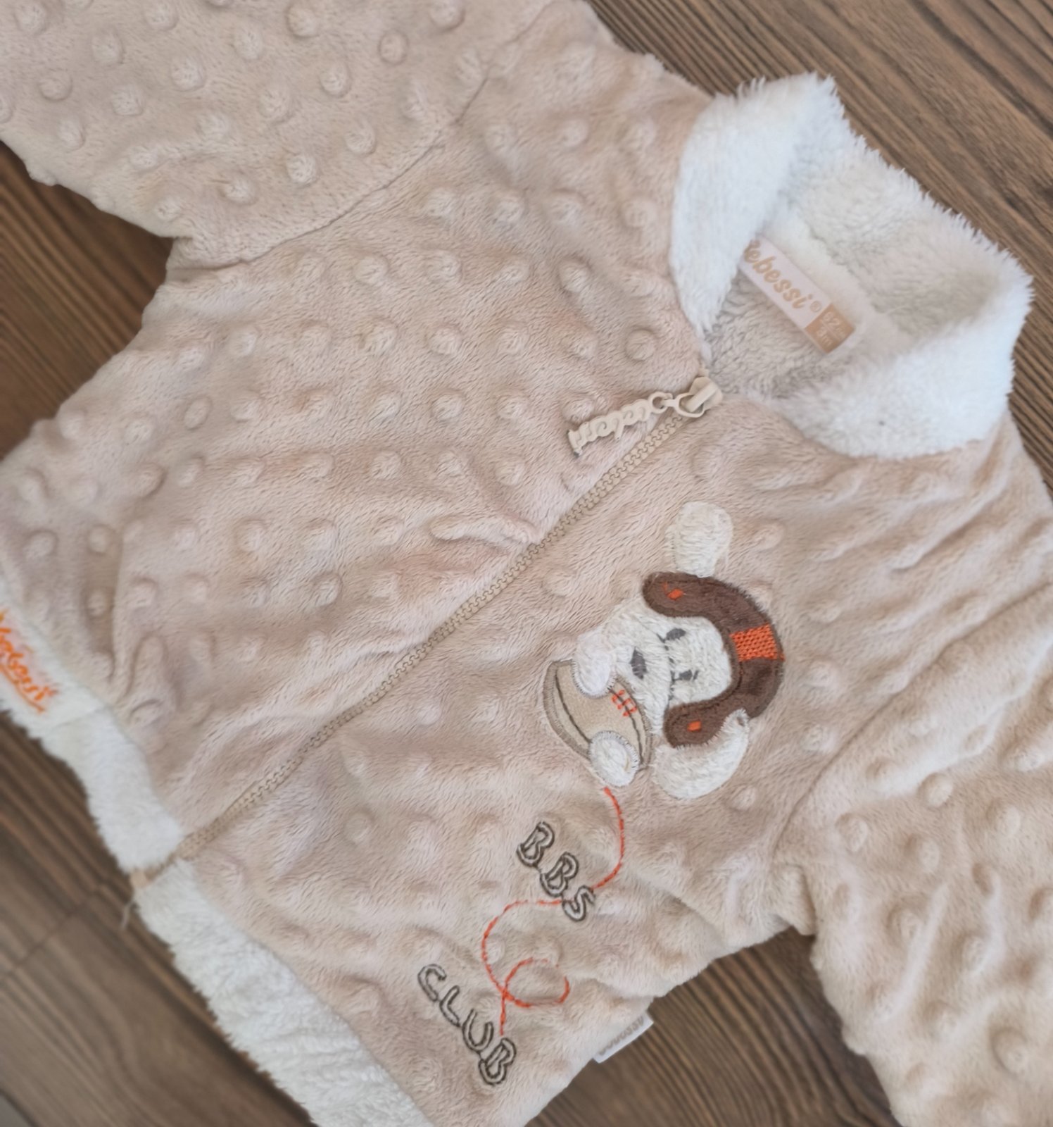 Flisová mikina s mackom s hnedými rukávmi. Rozopínanie na pleci. Bez poškodení, top stav.