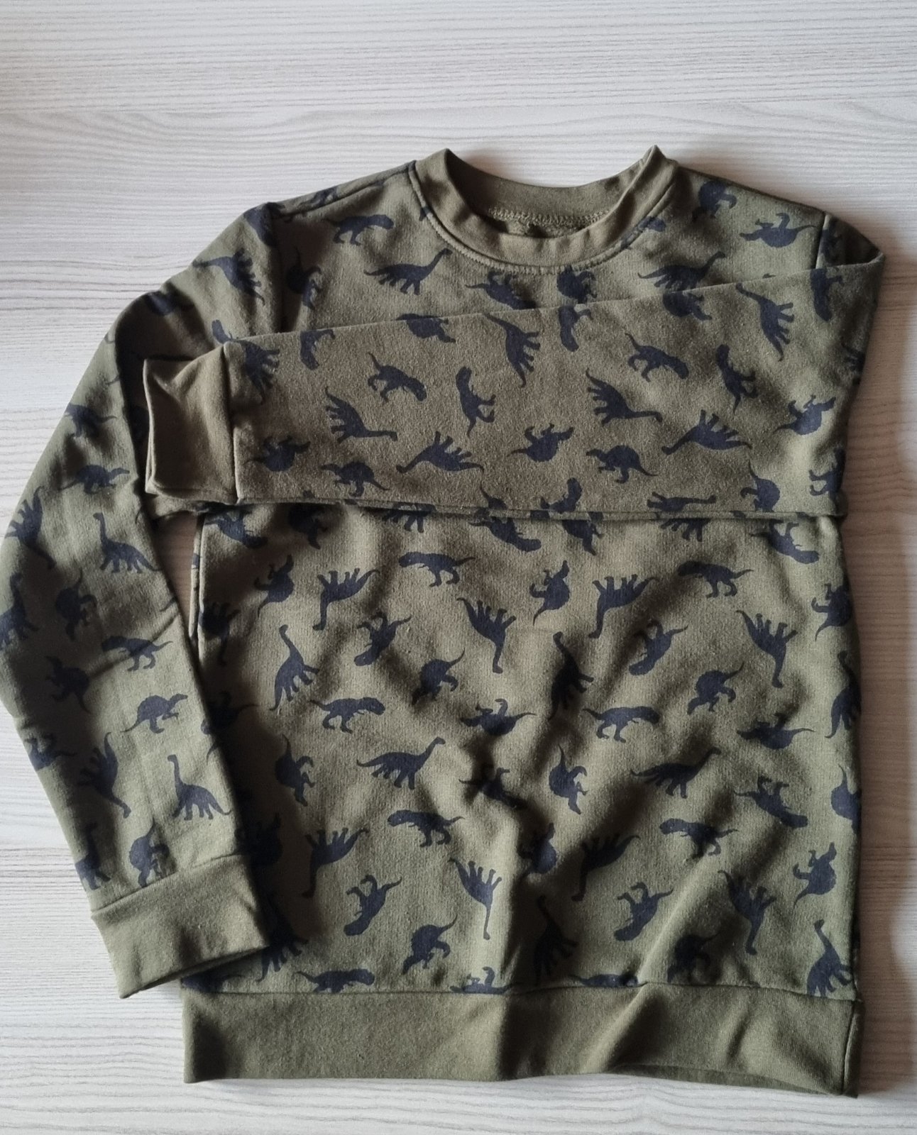 1x oblečená mikina, ťažšie sa oblieka cez hlavu. Zdá sa mi menšia