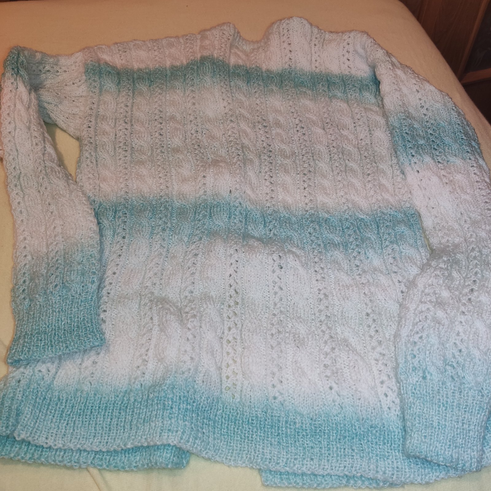 Predám nosený sveter vo výbornom stave. Príjemný na dotyk, neškriabe. Štítok s veľkosťou chýba, preto sa radšej riaďte rozmermi.