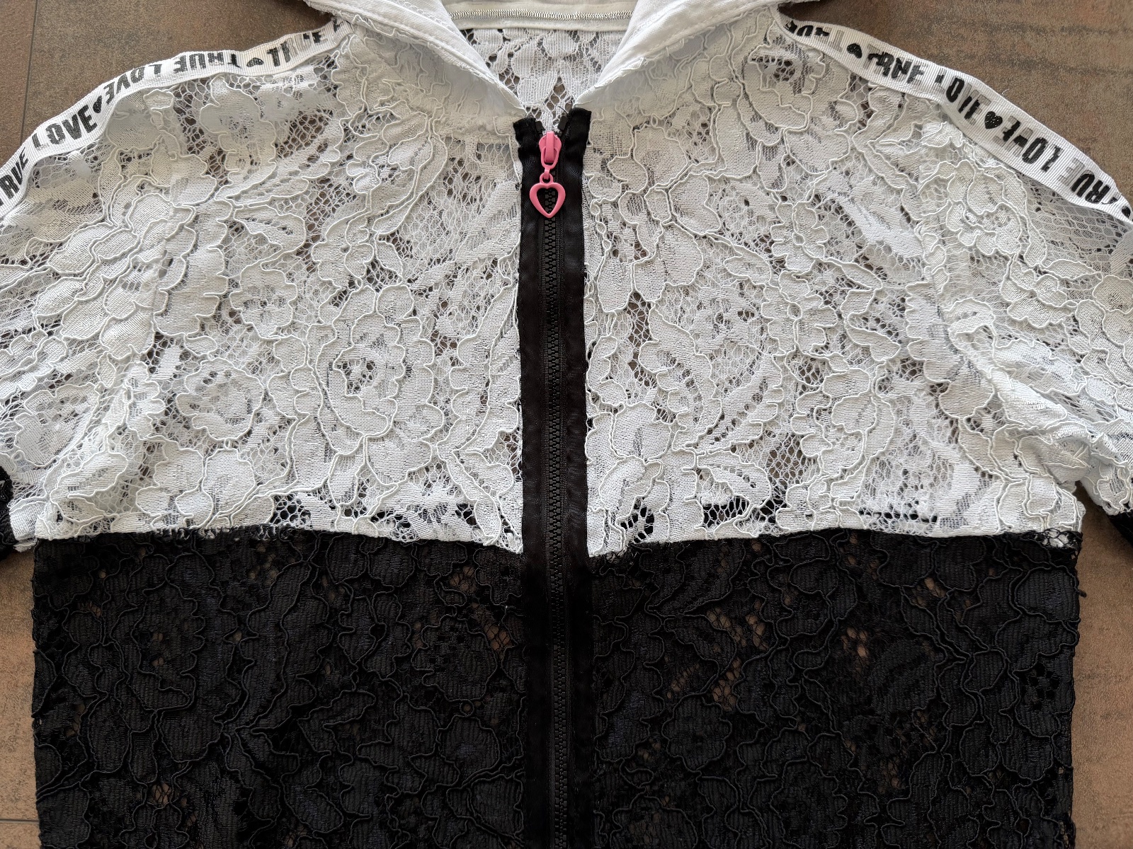 Mikina je v pknom stave, no najspodnejší svok je nadtrhnutý.
