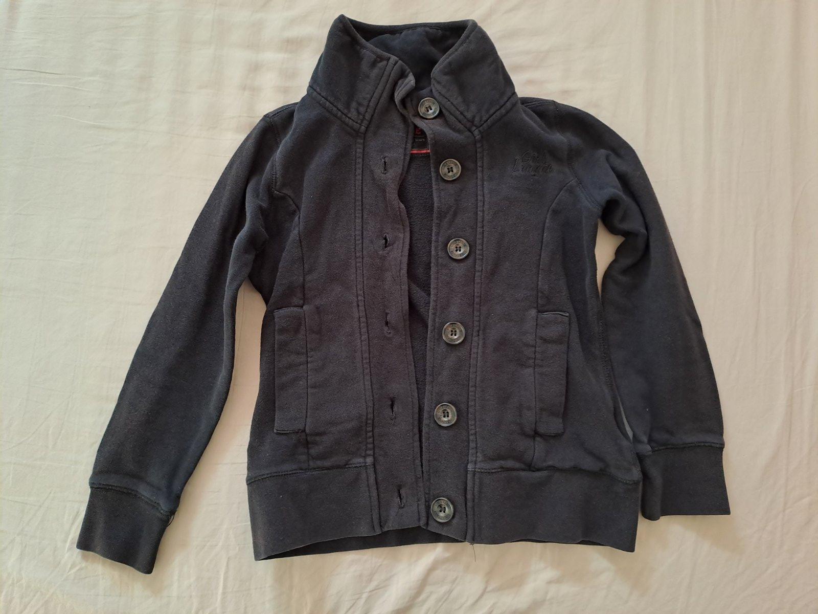 Pekná sačková mikina ma gombíky, kupovaná na MK, vidno už nosenie, farba nie je úplne sýta, ale určite ešte poslúži. Cena je bez poštovného.