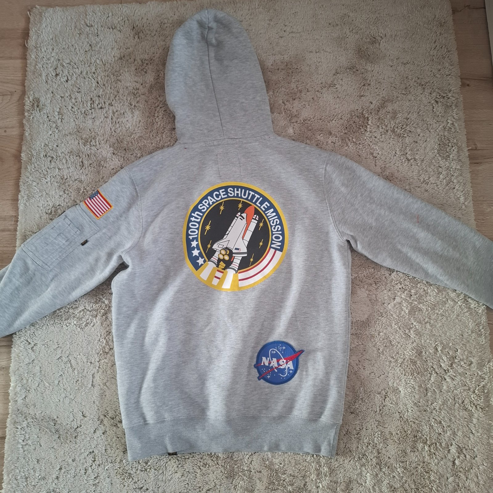 Mikina je bez poškodení len na jednom rukáve je trošku zafarbená vid foto. Zn.Alpha Industries