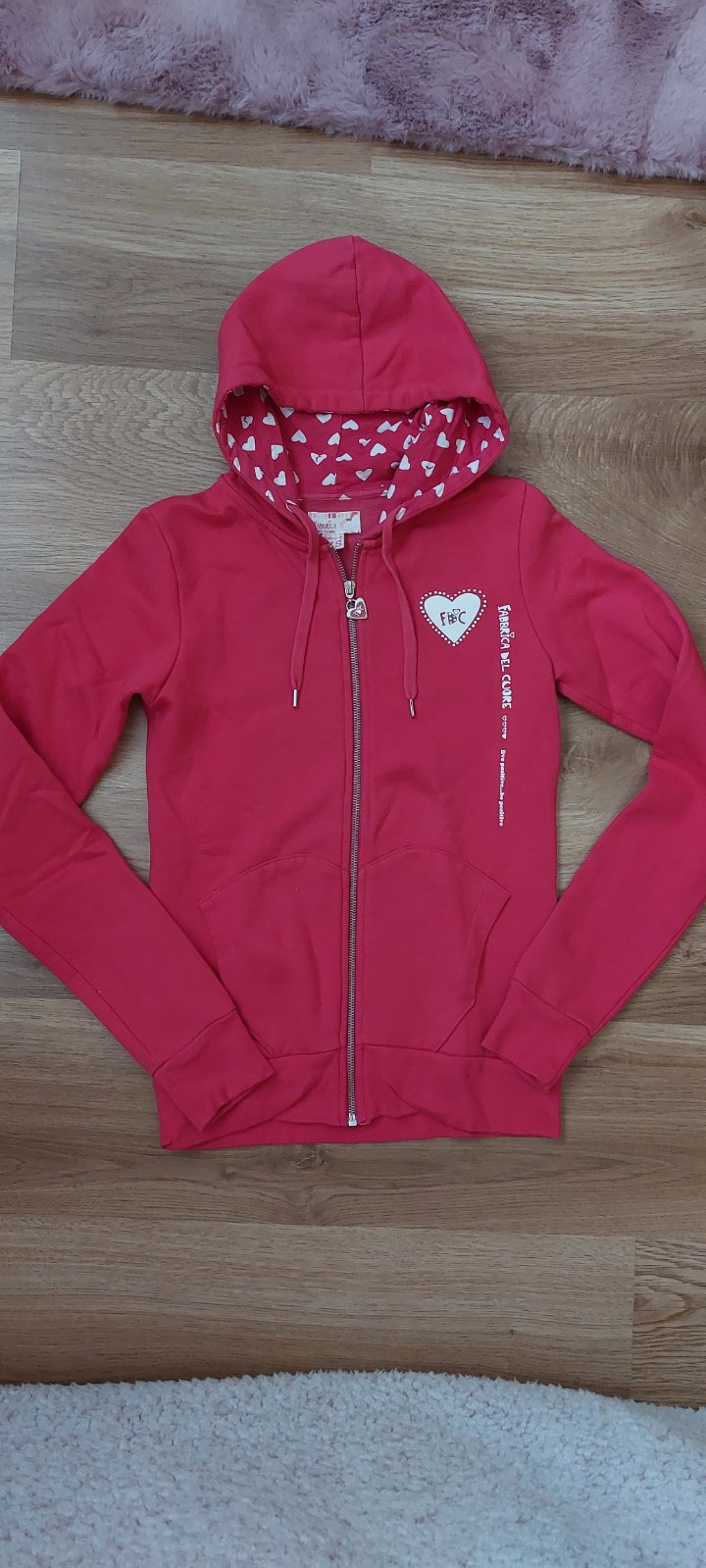 Mikina bola veľmi málo nosená. Farba je neónovo ružová. Viac detailov je viditeľných na fotkách.