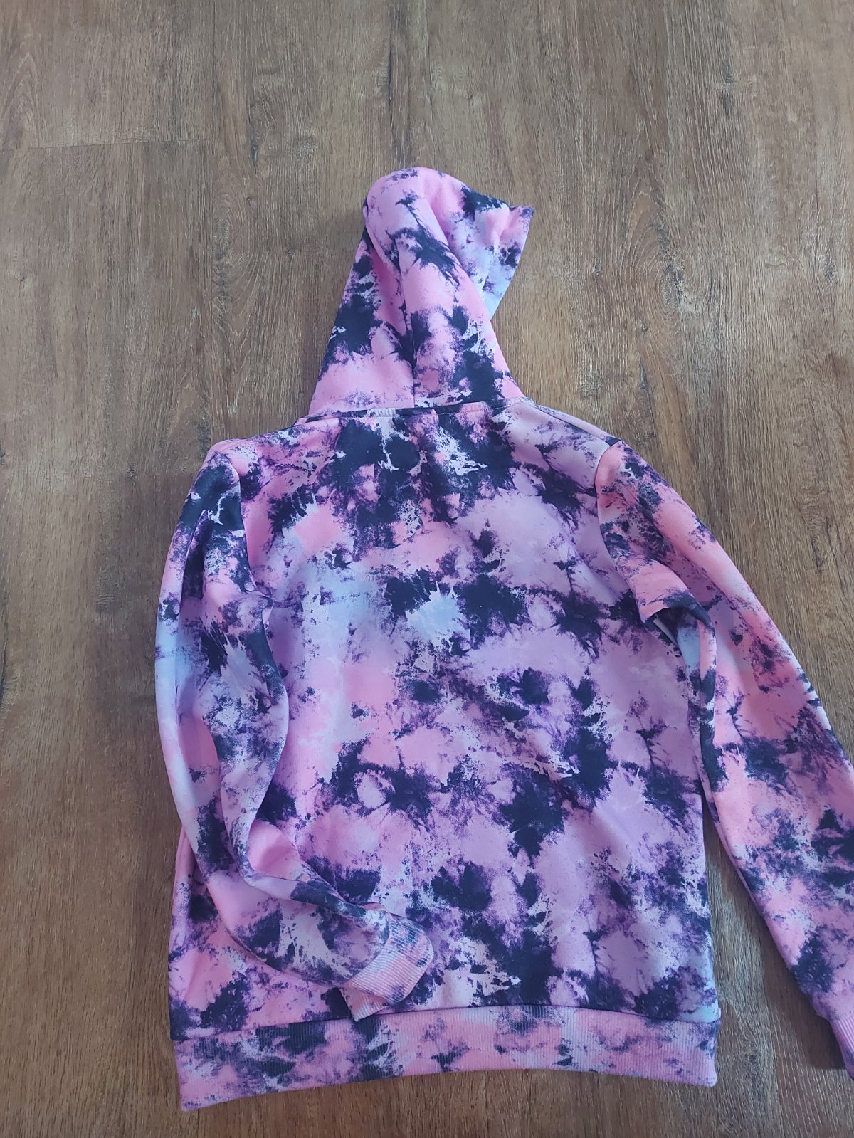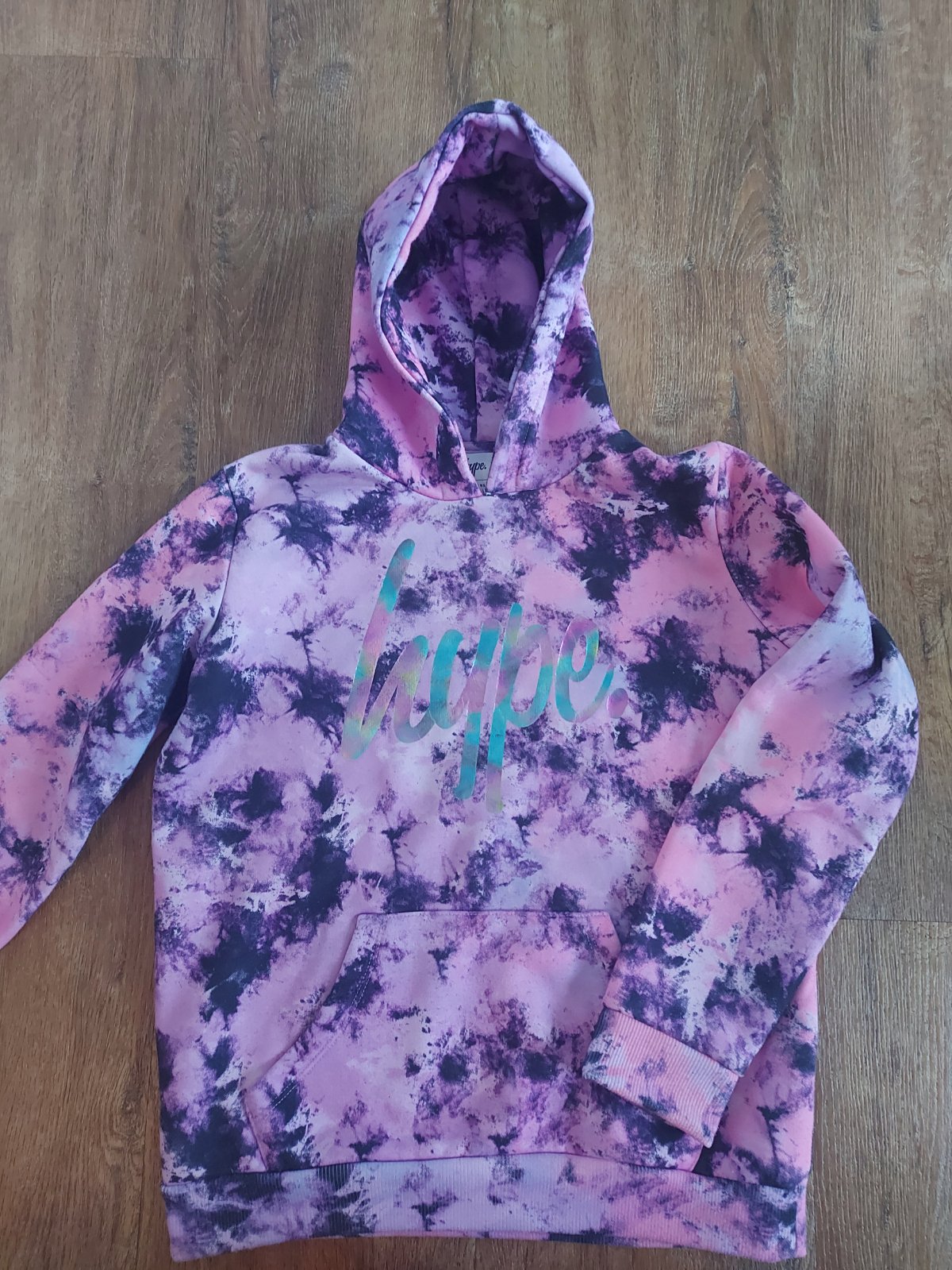 Predám krásnu batikovanu mikinu HYPE z next cez hlavu s prednym vreckom, farba ruzovo-fialova s čiernou. Dĺžka rukáv od pleca 54 cm, dĺžka chrbta 60 cm.