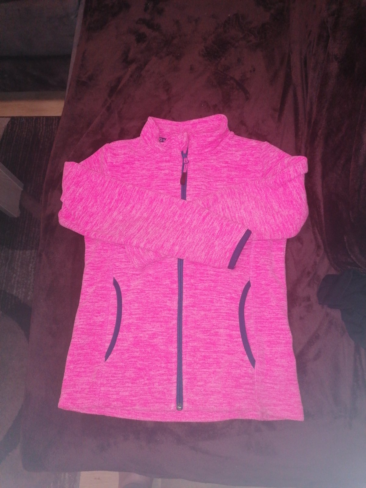 Fialovo ružová tepla mikina z Lidla so stojacikom nosená nepoškodena zipsy v poriadku. Jemné minižolky na ukončení rukávov aj dole na zakončení bundy. Rozmery: dĺžka 51cm, šírka 2x38cm, dĺžka rukáva od ramena 51cm a dĺžka rukáva od krku 60cm. Cena je bez poštovného.