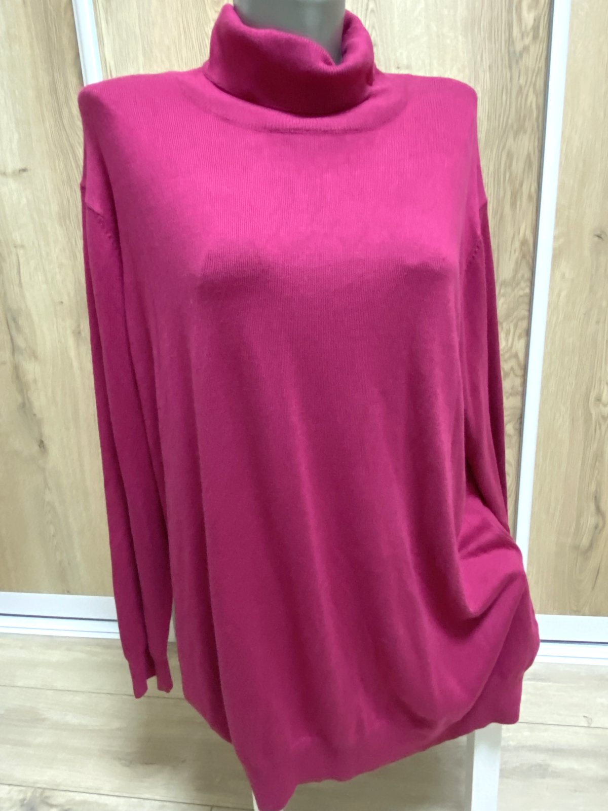 Dámsky pulover rolák ... v tmavoružovej farbe... veľmi dobrý stav ... značka: LAURA TORELLI ... veľ. XL , no hodí sa na 46 veľkosť ... dlžka 77 cm, šírka pod pazuchami 62 cm, šírka pás 60 cm