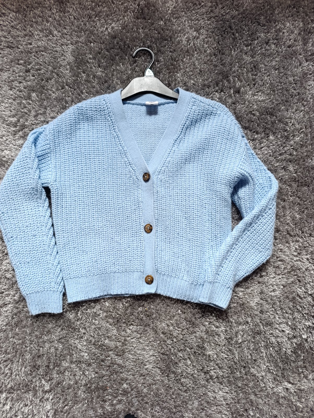 Ponukam bledomodry kardigan. Par krát použitý. Veľ.pisana 146/152, nositeľné už skôr. Na ľavom rukáve zozadu, je malý žltý fiacik. Farba je trochu bledsia ako na foto. dlzka 44,5 cm rukav od krku...