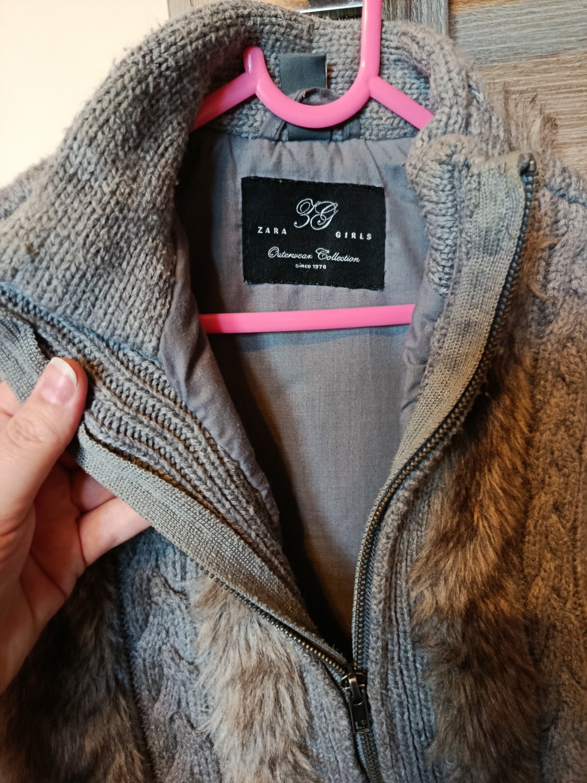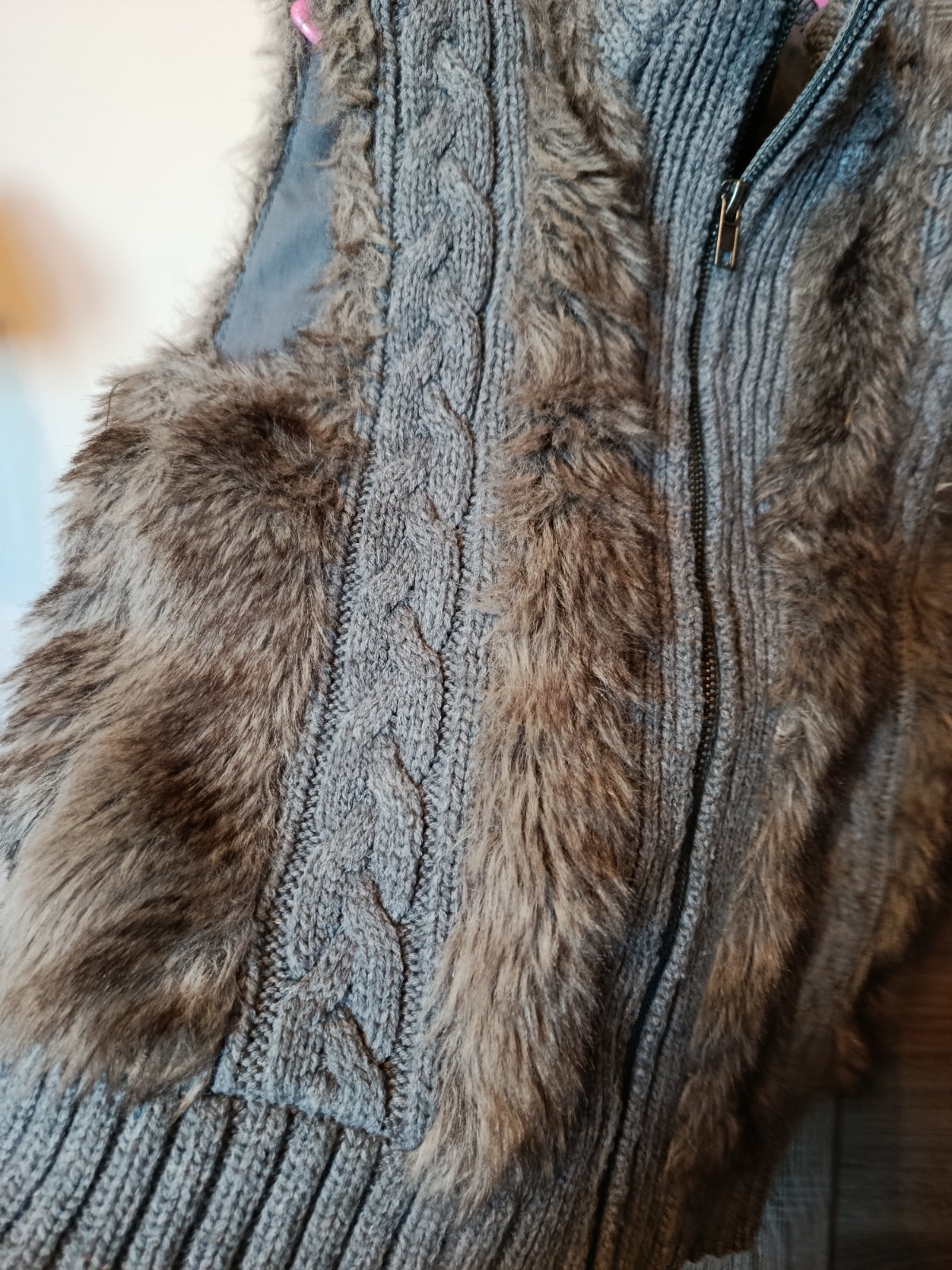 Krásna vesta,ktorá sa hodí ku šatám,sukniam a neskutočne oživí celý outfit.Mali sme ju vo viacerých kusoch v rôznych veľkostiach.Pekný nosený stav,z vnútornej strany má nejaké škvrnky,čo vôbec pri nosení nevadí.