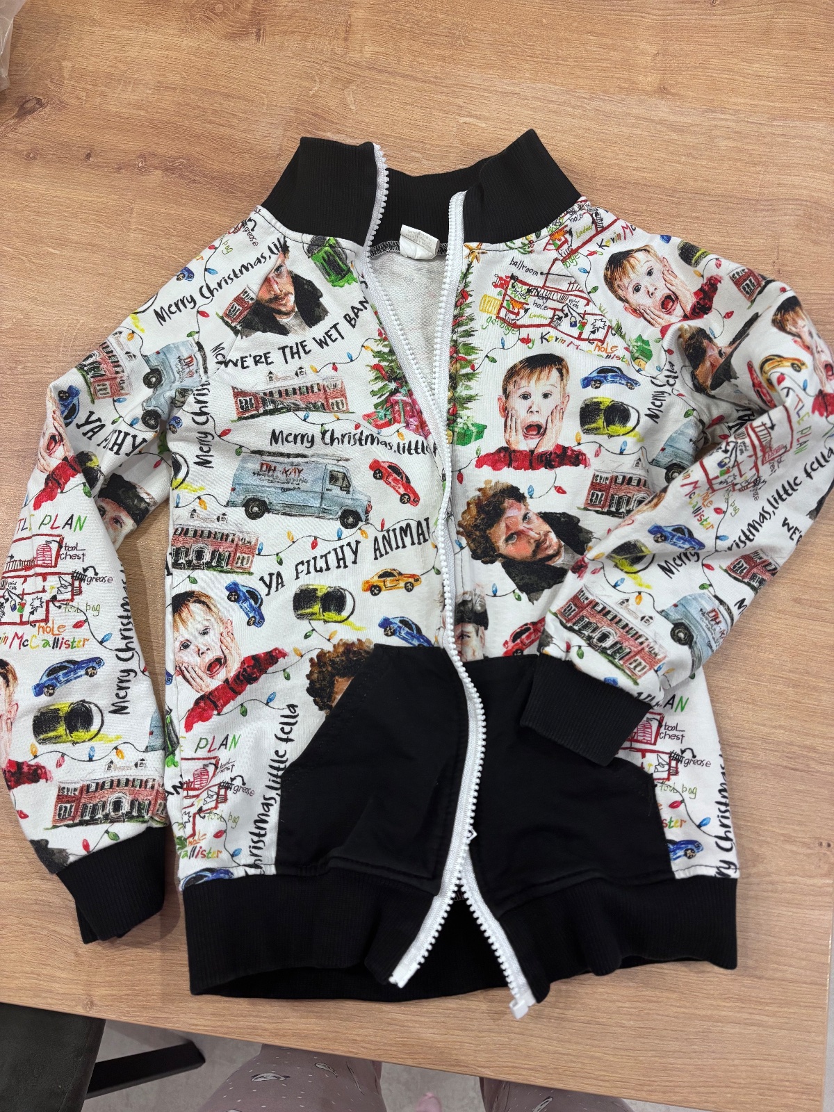 Sam doma mikina. Pisana velkost 128. No ponosite od 122. Tak od 5-6 rokov. V perfektnom stave, kazdy sa nas pytal odkial ju mame :) je rucne sita od jednej pani. Osobne 17€. Postou 20€(vratane postovneho)