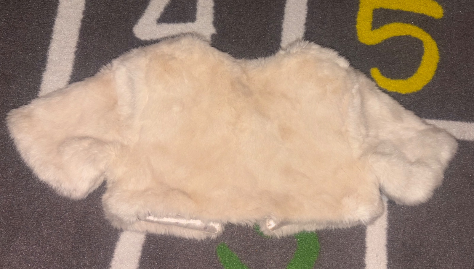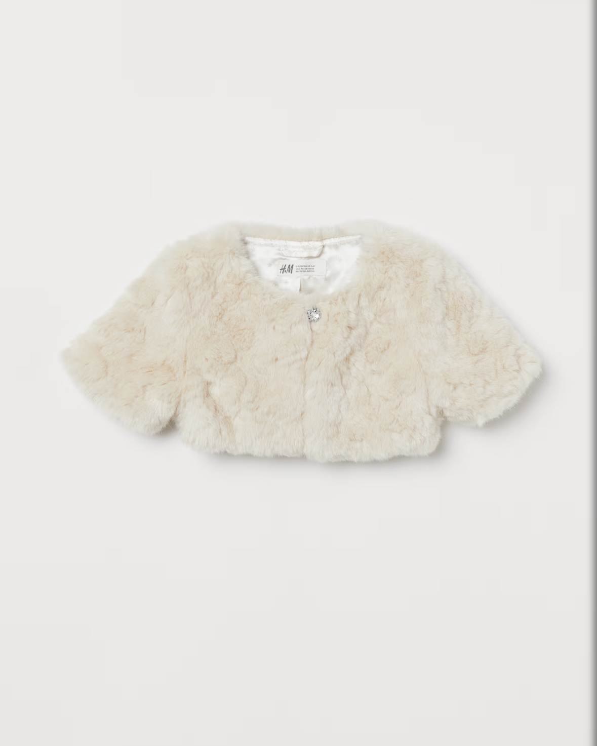 Bolerko z mäkkej umelej kožušiny. Má krátky rukáv a zapínanie na jeden gombík pri krku.Saténová podšivka.
