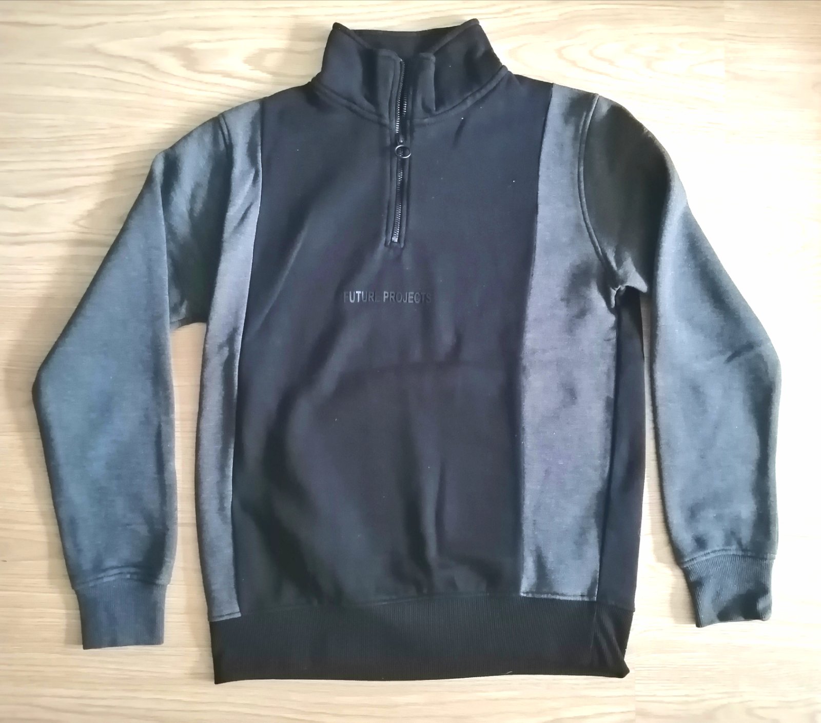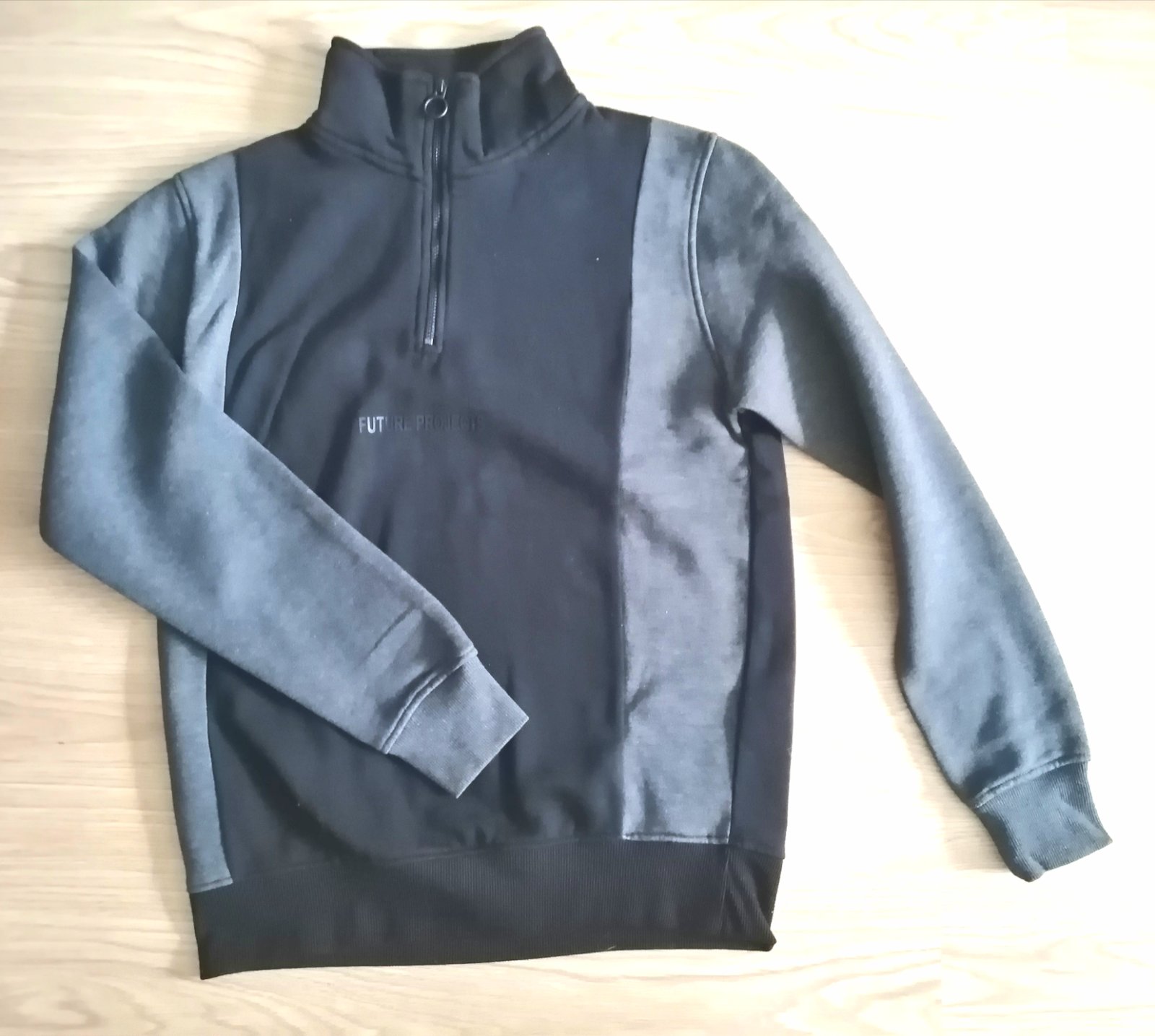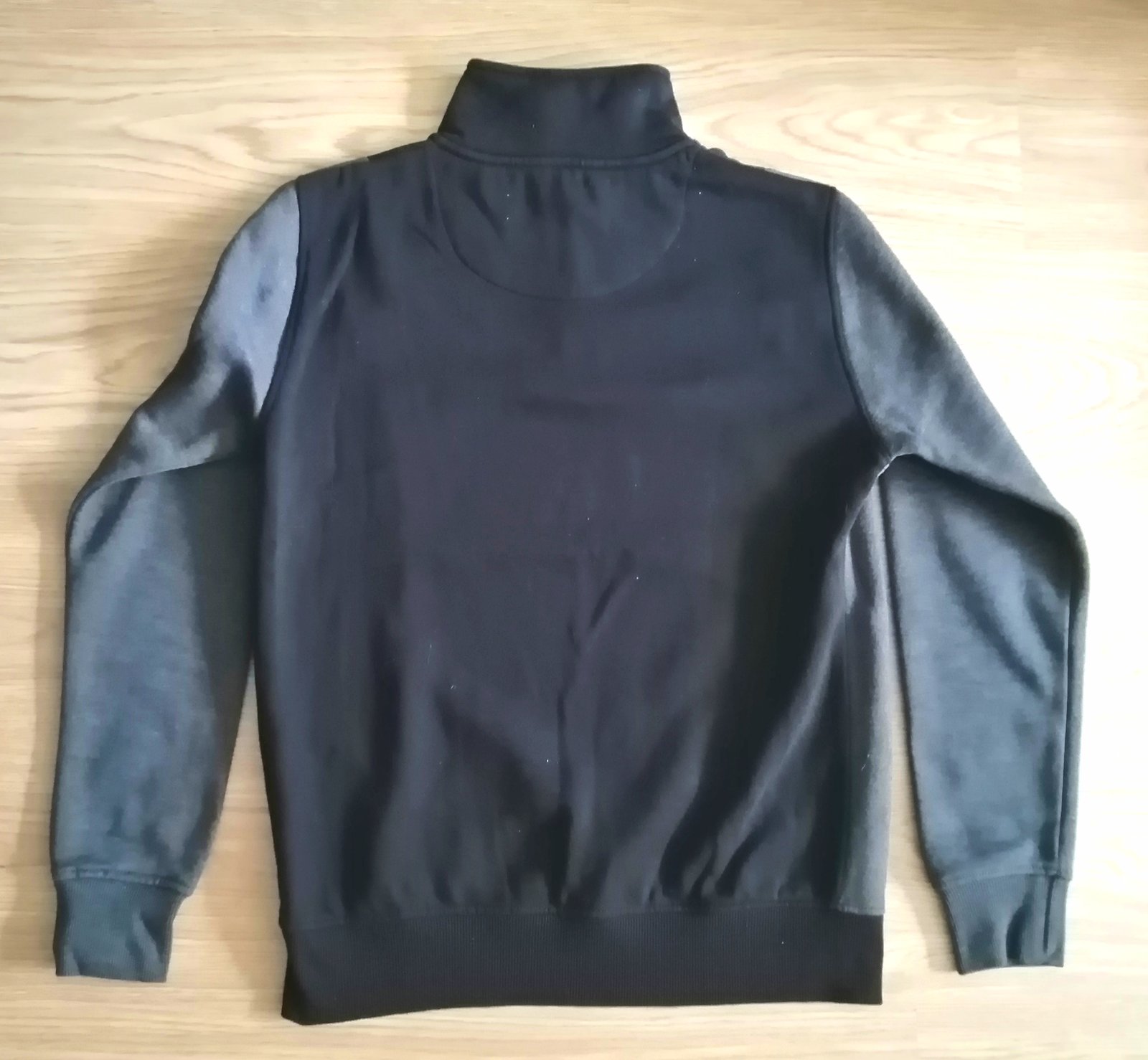 Kvalitná pánska /chlapčenská mikina so stojačikom a zapínaním na krátky zips, v kombinácii čiernej a tmavosivej farby, veľ. S, zn. Primark, kupované v Prahe. Rozmery :