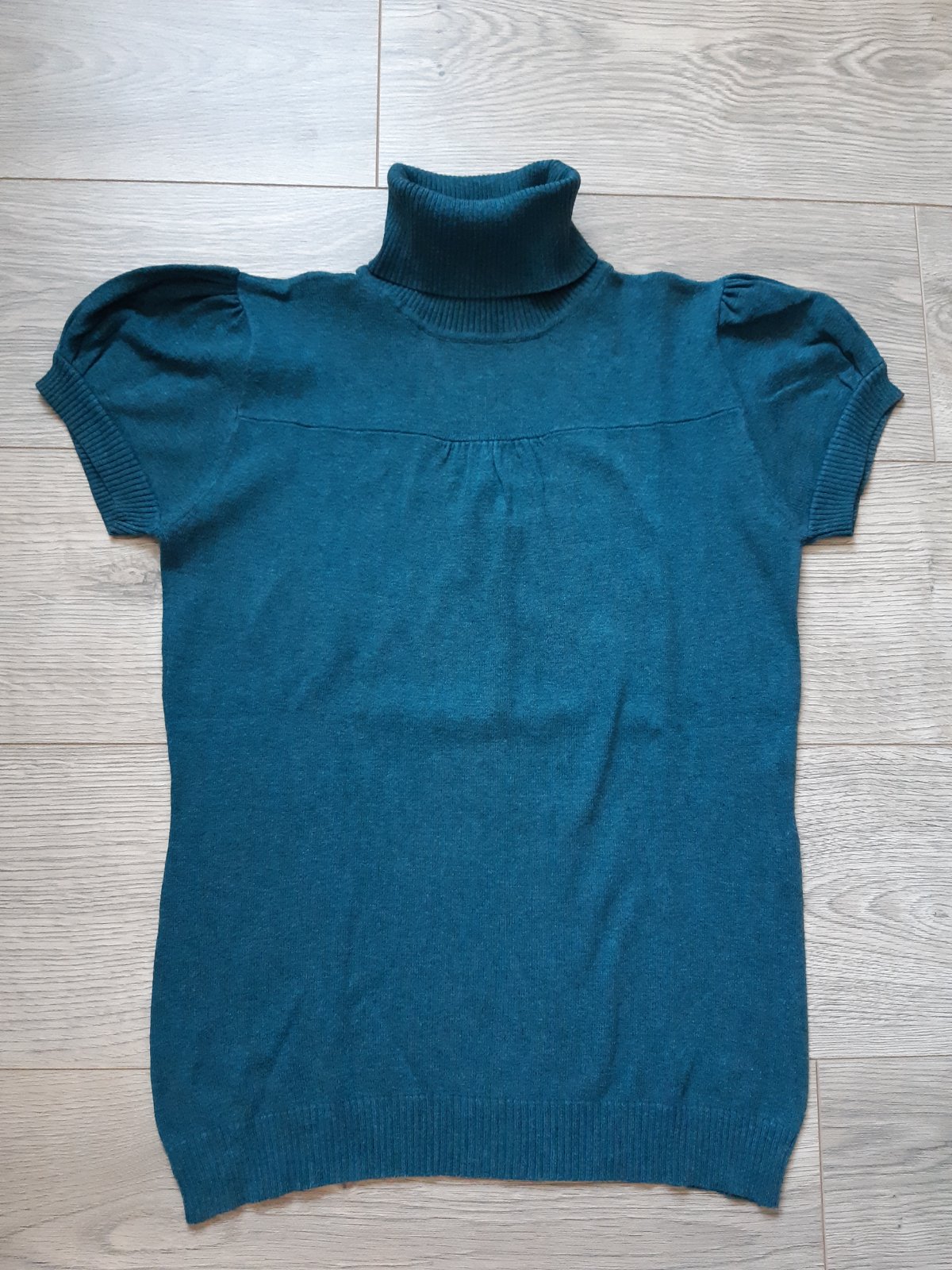 Tensi,bledo tyrkysovy svetrik do pasu,pruzny,vystrih do v-ka,po bokoch nariaseny,kupovany novy,noseny,bez chyb,pekny dlzka 52cm,sirka cez prsia v klude 40x2,rukav od krku 67cm