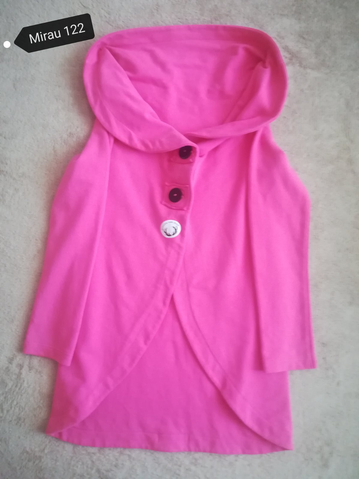 Farba sivá..mení odtiene mierne do ruzova.. nápis perletovo ružový..píše 128, ale sedí už od 122..malo nosená , ale Mirau mikiny majú také bdele farby.. máme dve mikiny a tú druhú dcéra mala Max 3x...