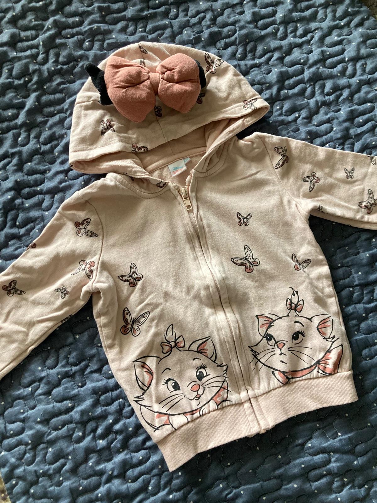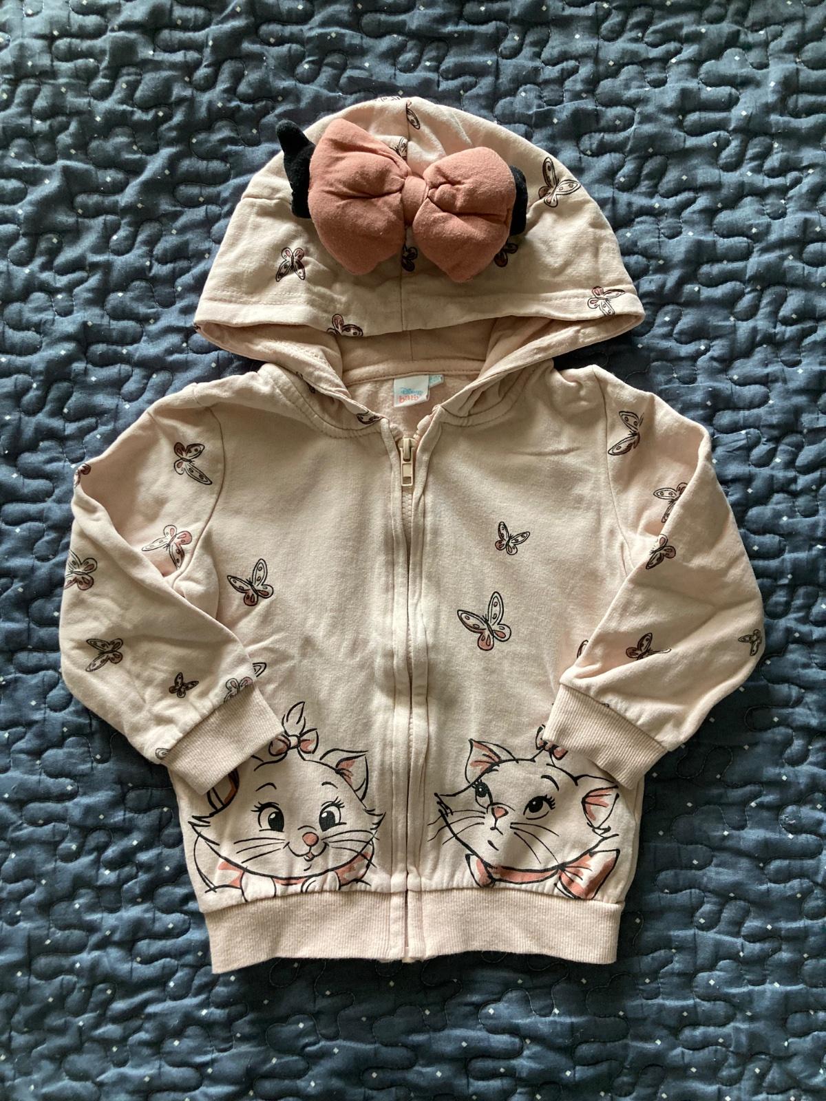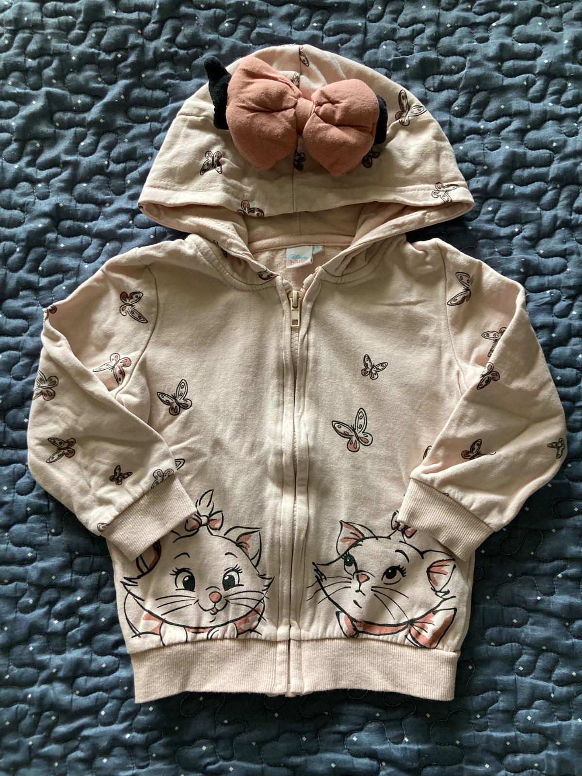 s mašľou na kapuci, bez žmolkov, sedí na veľkosť