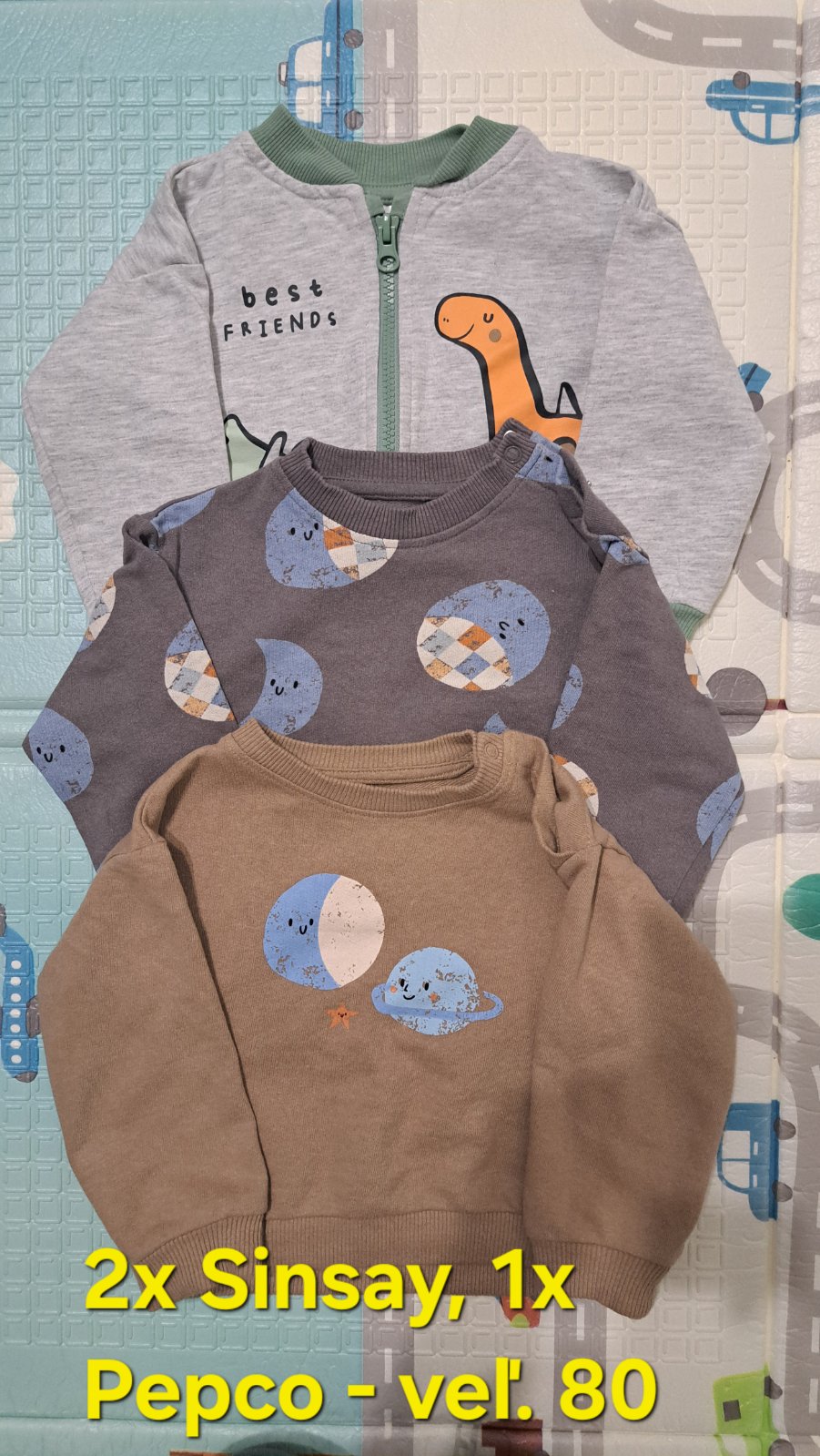 Mikina +tricko rovnakeho vzoru. Podla mna sedi na menej ako 80.