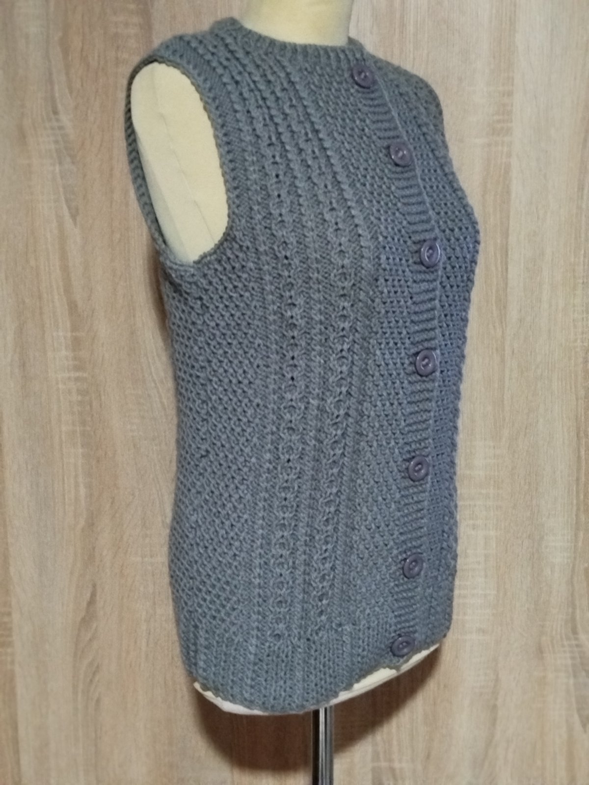 Pletena vesta ,zapínanie na 5 gombíkov objem hrude:96 cm dlžka:65 cm