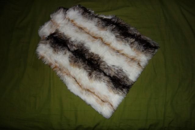 Krasna vesticka z umelej kozusinky vo vybornom stave. Znacka nie je uvedena, vesticka je vyrobena v UK.