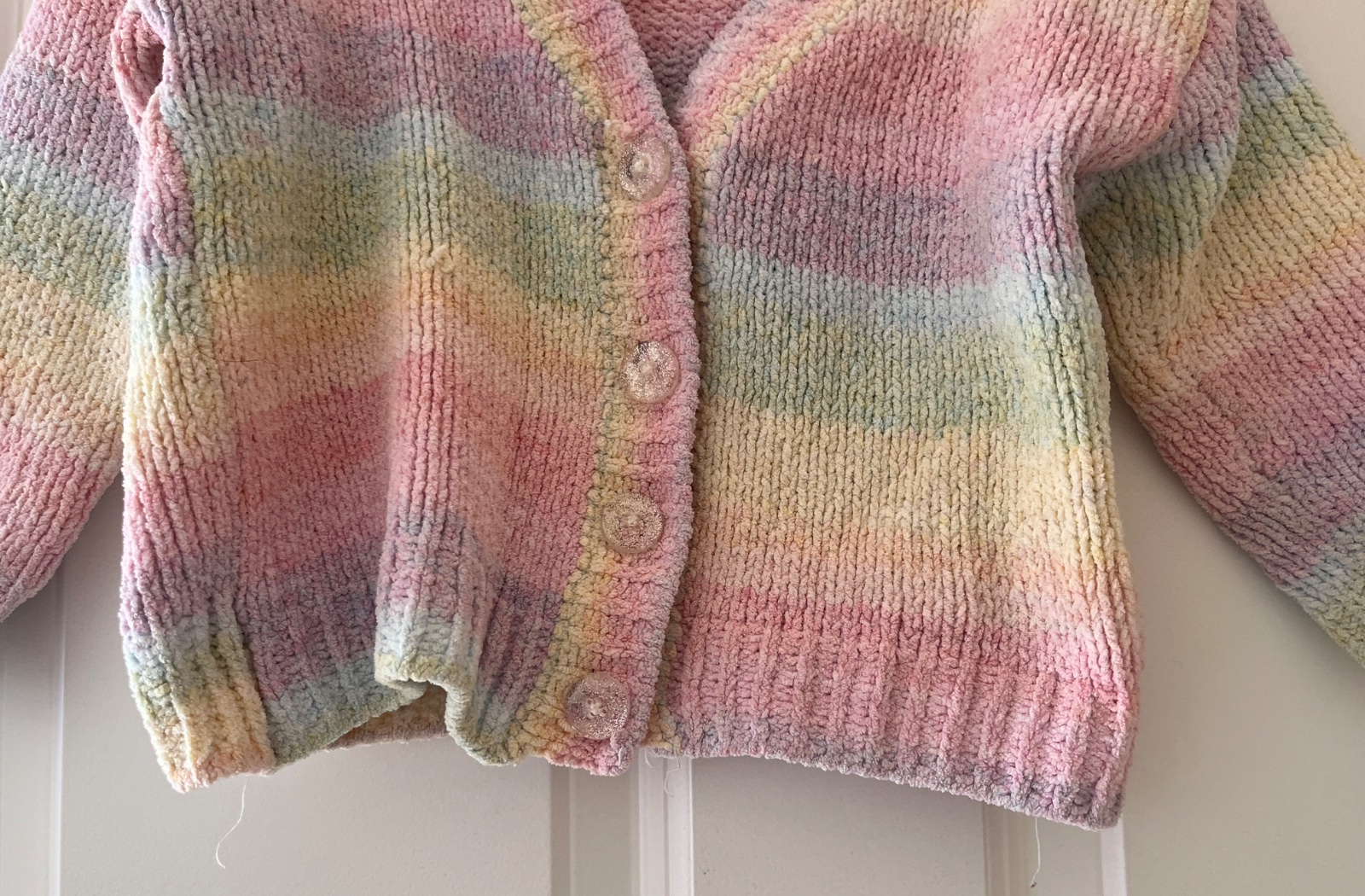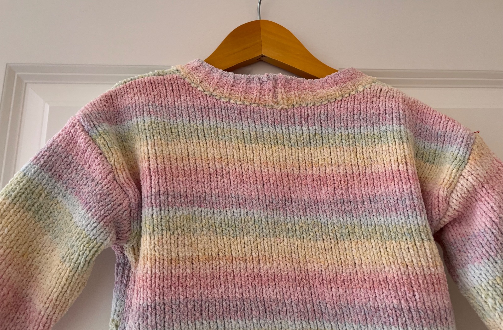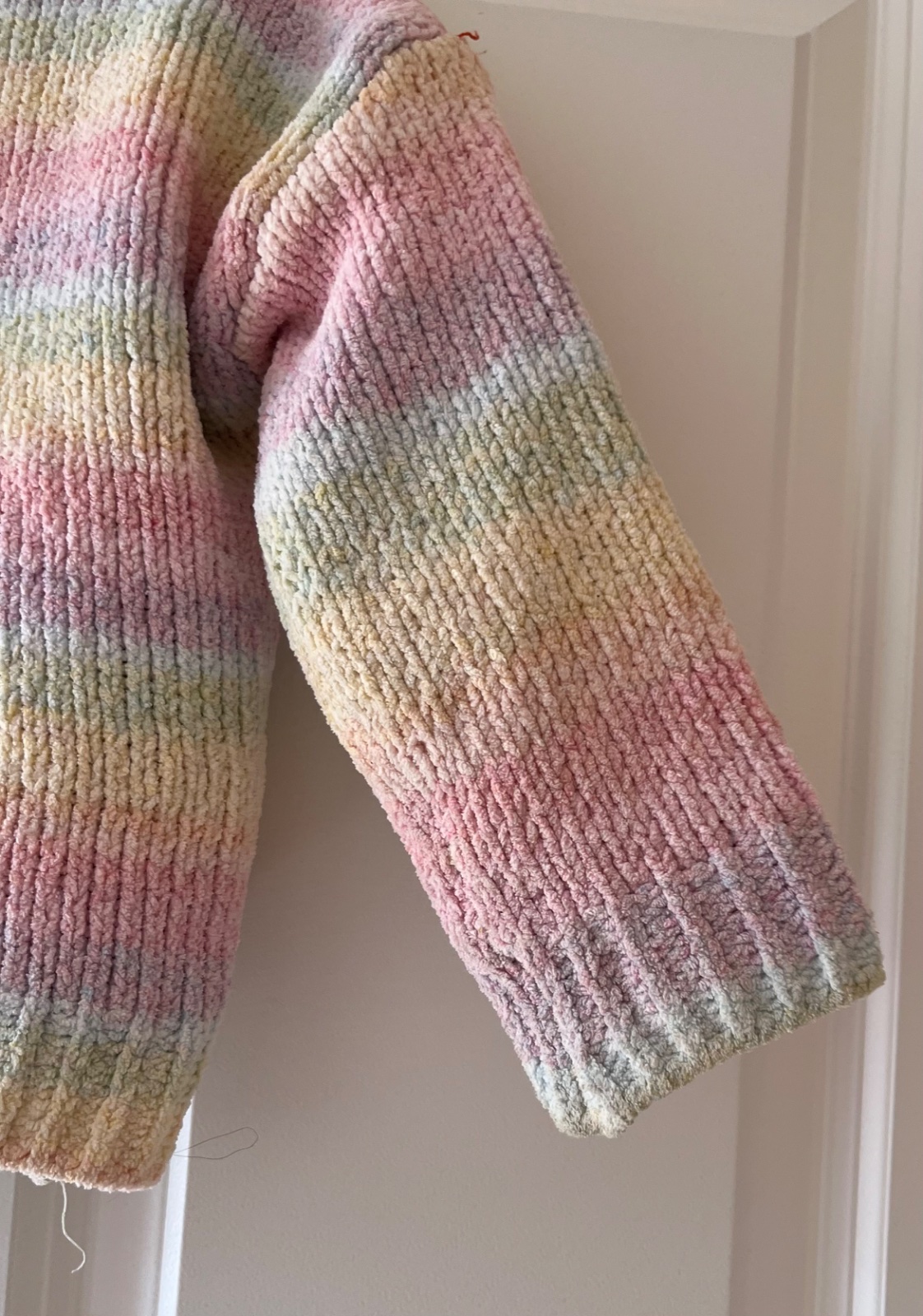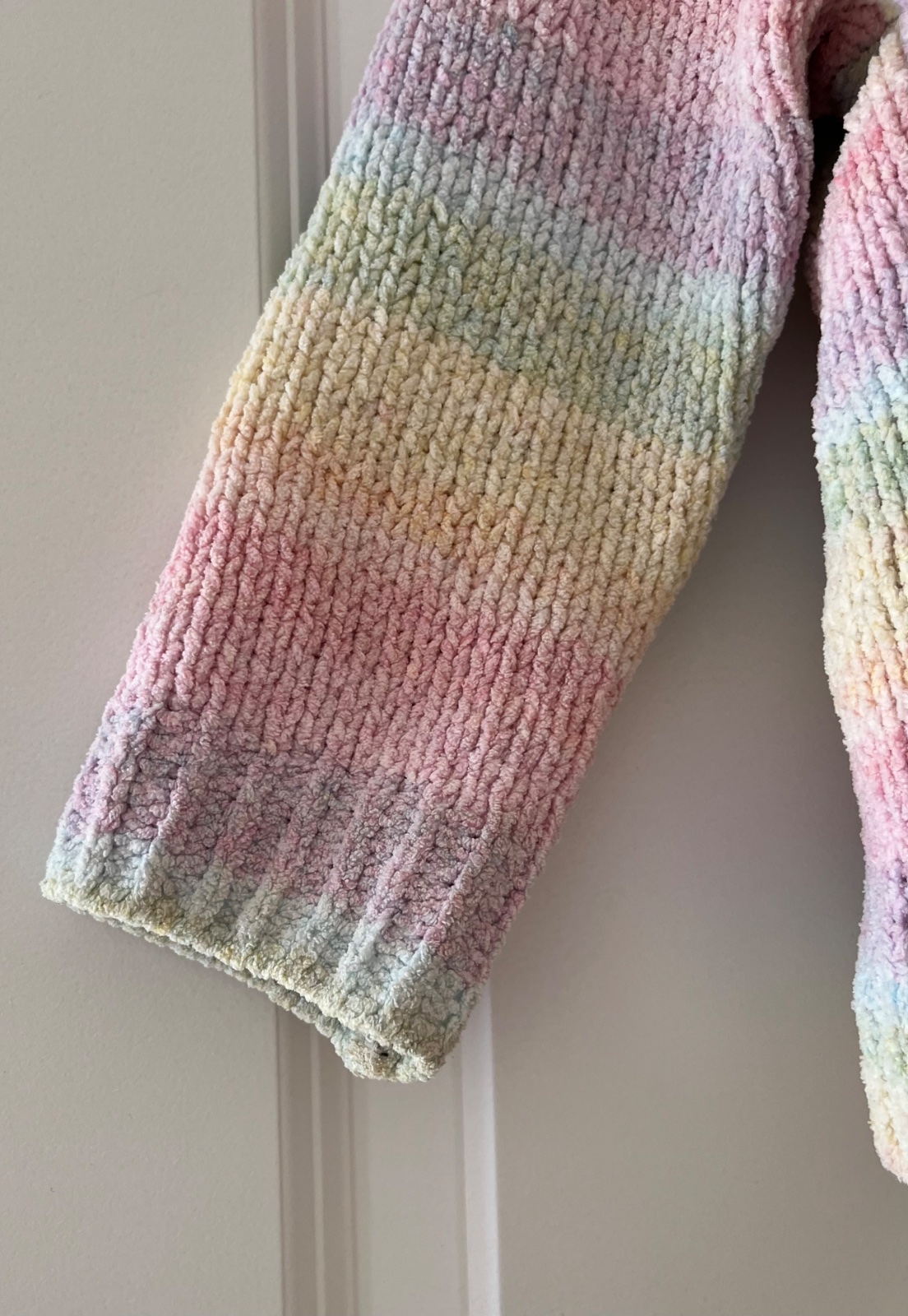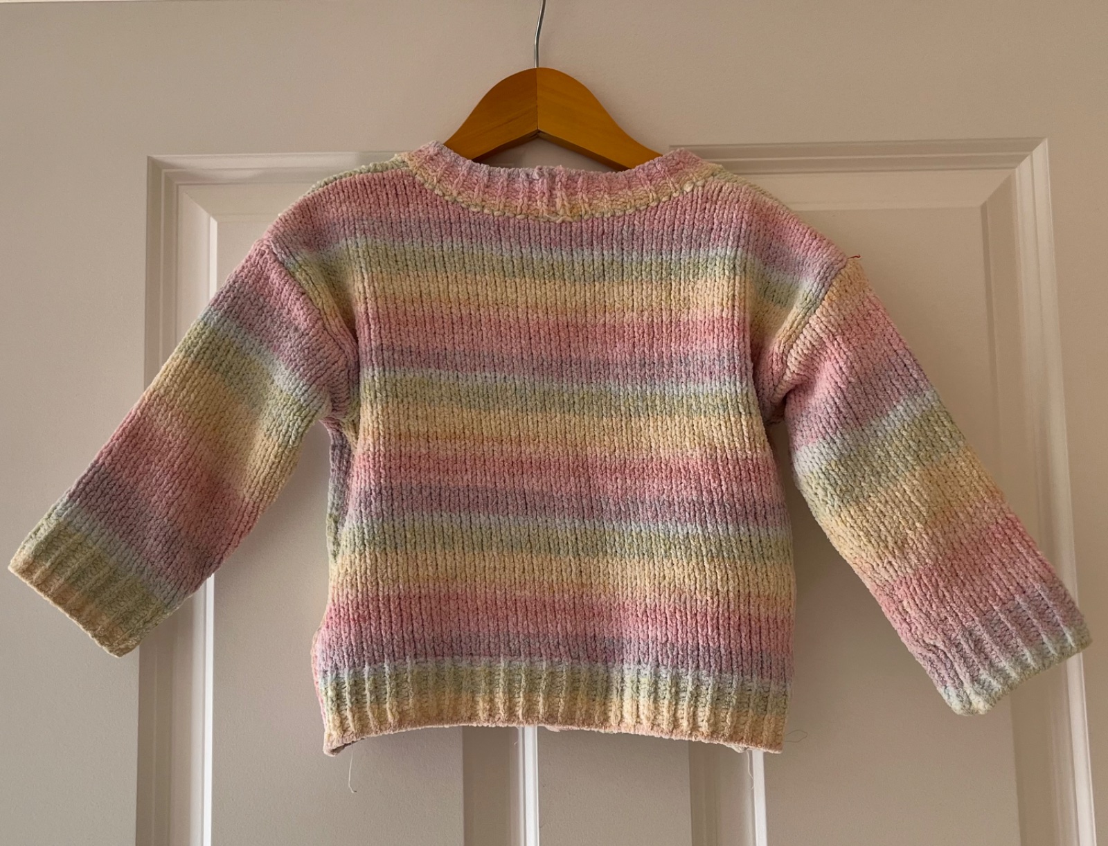 - nosený dúhový pestrofarebný sveter