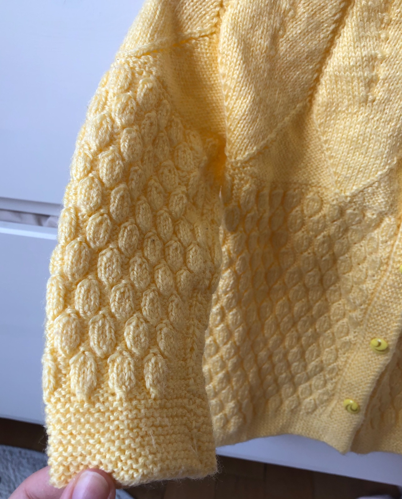 - párkrát nosený žltý handmade sveter
