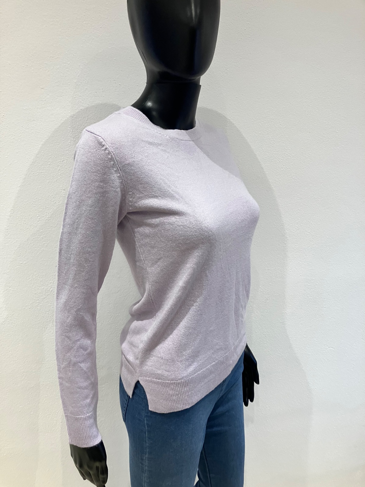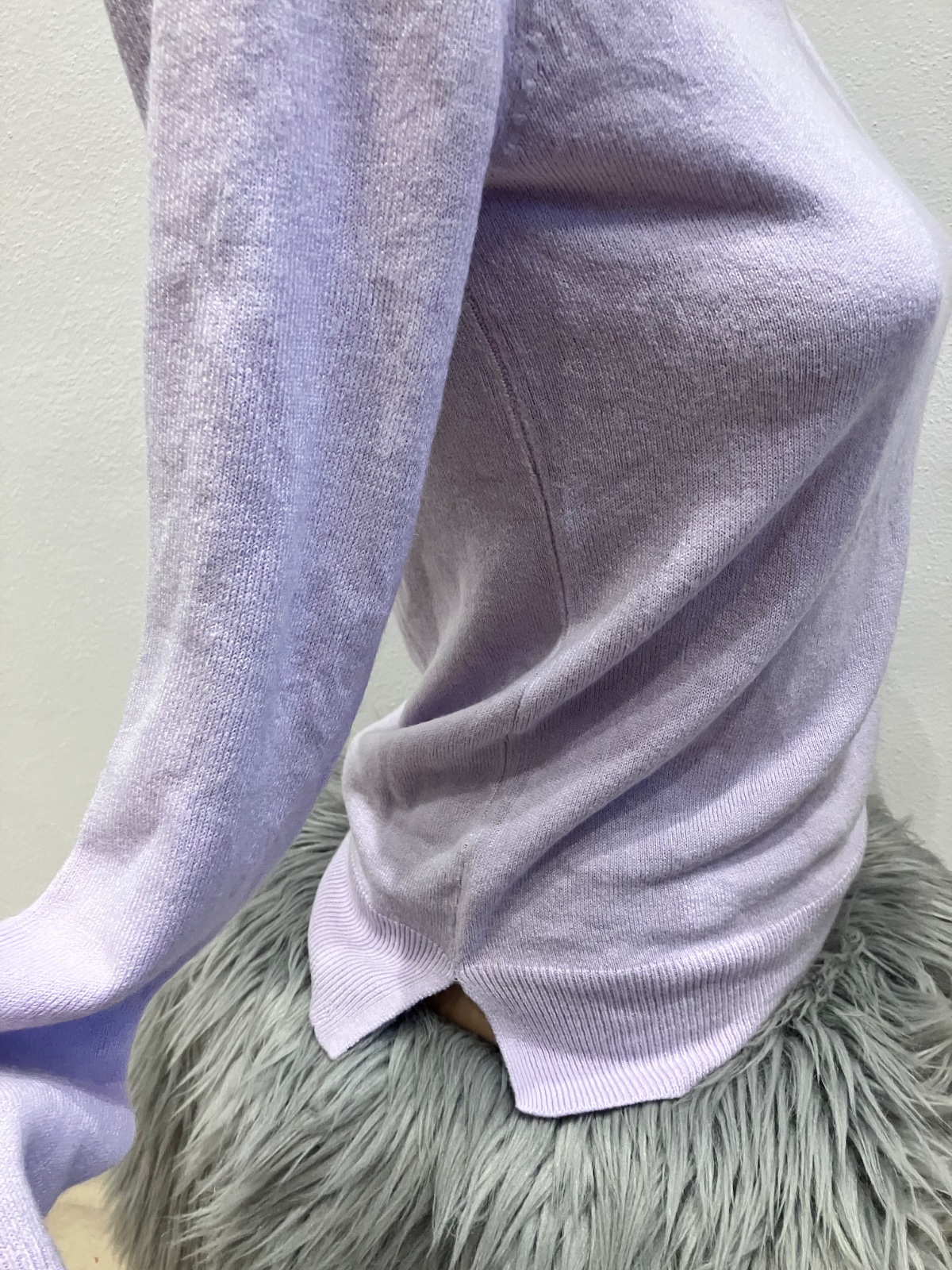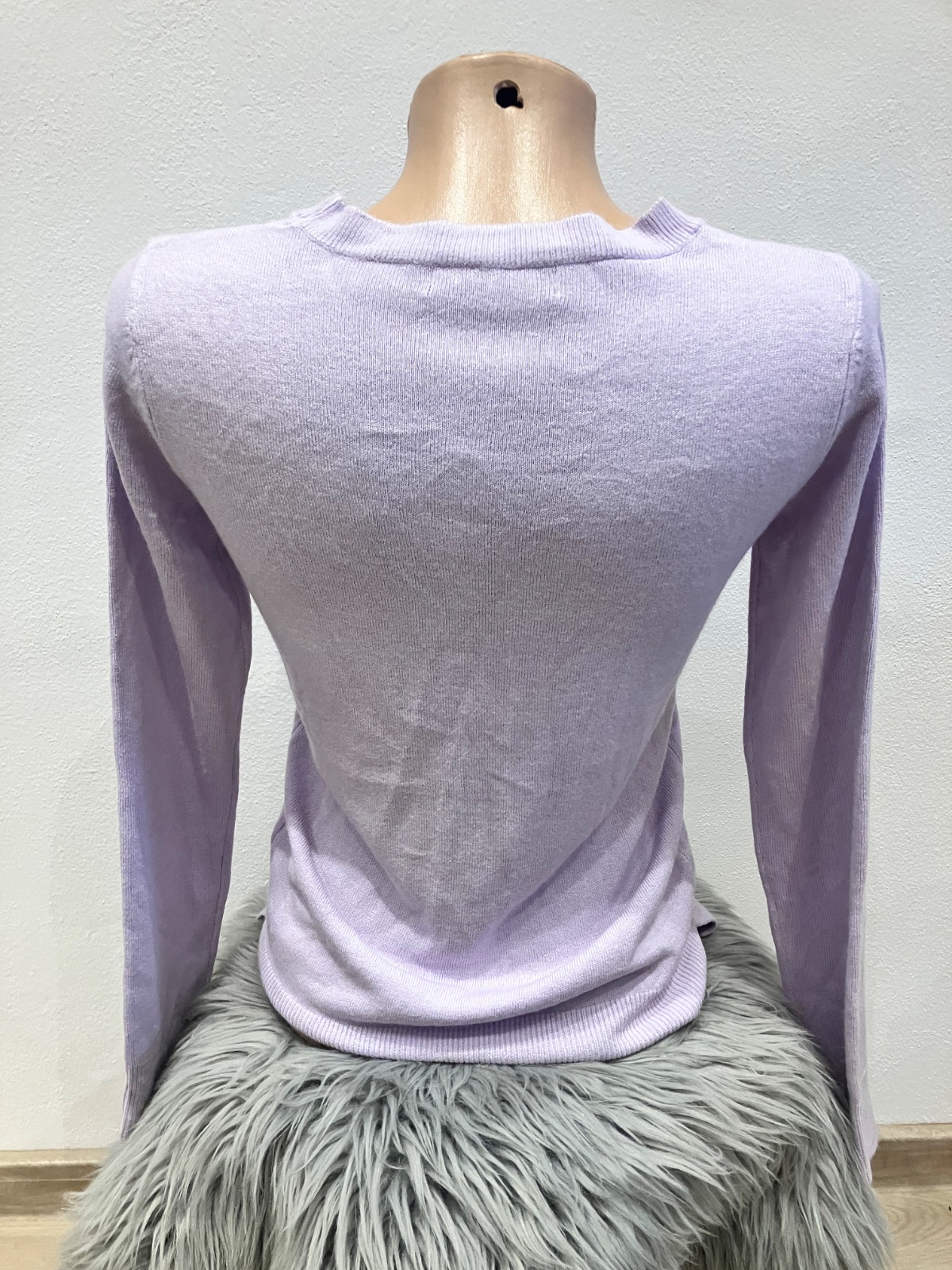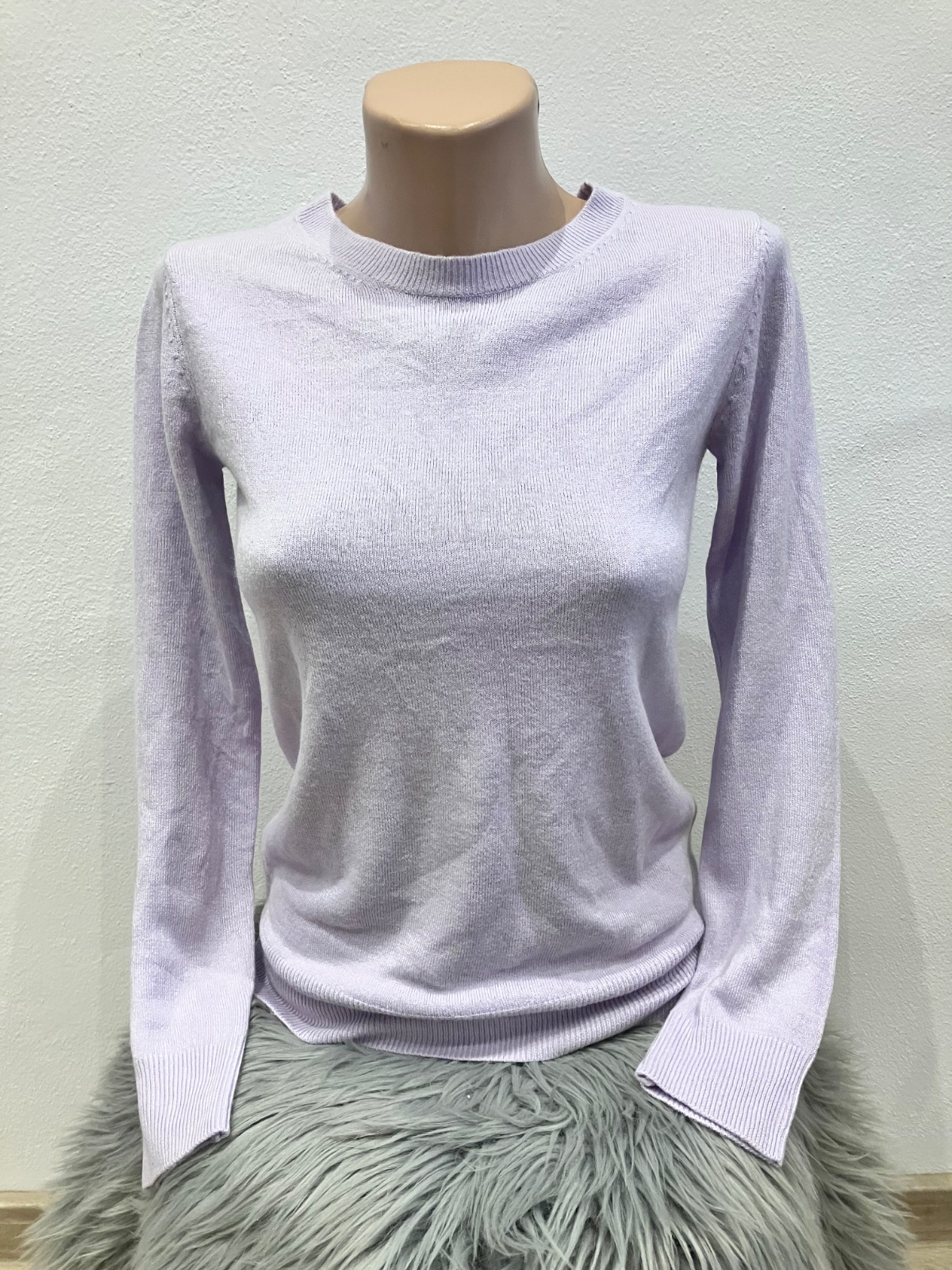 Dámsky sveter, okrúhly výstrih, tenký, elastický, materiál 100%akril. Farba: svetlofiaľová.