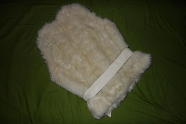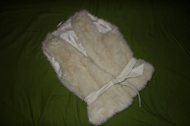 Krasna vesticka z umelej kozusinky vo vybornom stave. Ma kozenkovy opasok. Velkost je udana ako UK12- cize nasa 40-ka.