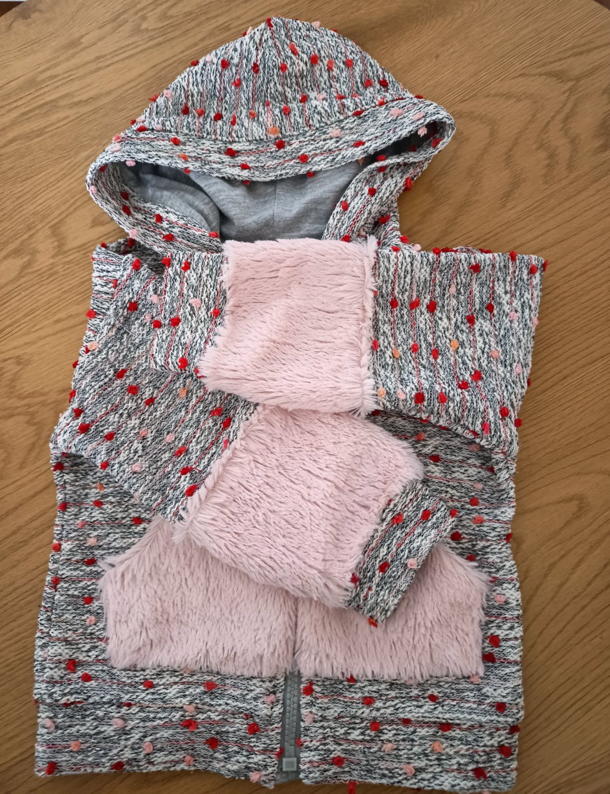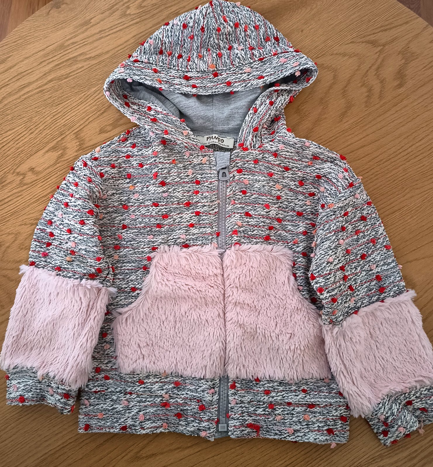 Svetrík po našej malej. Veľmi teplý na zimu perfektný alebo na jeseň k vestičke. Veľkosť písaná 18-24m takže sa dá pokosiť dlhšie. Minižmolky z prania ale stále pekný.