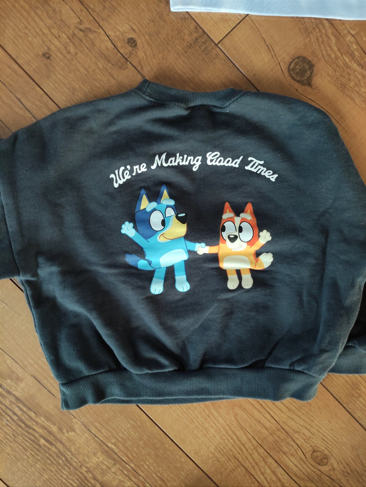 Velkost na mikine je uvedena 116 pre 6 rokov, no je to skor 110, teda 4-5 rokov. Znak sa da pretacat na farebny, alebo cierno biely, je uz trocha bledsi. Mikina je v peknom stave no je uz mierne bl...