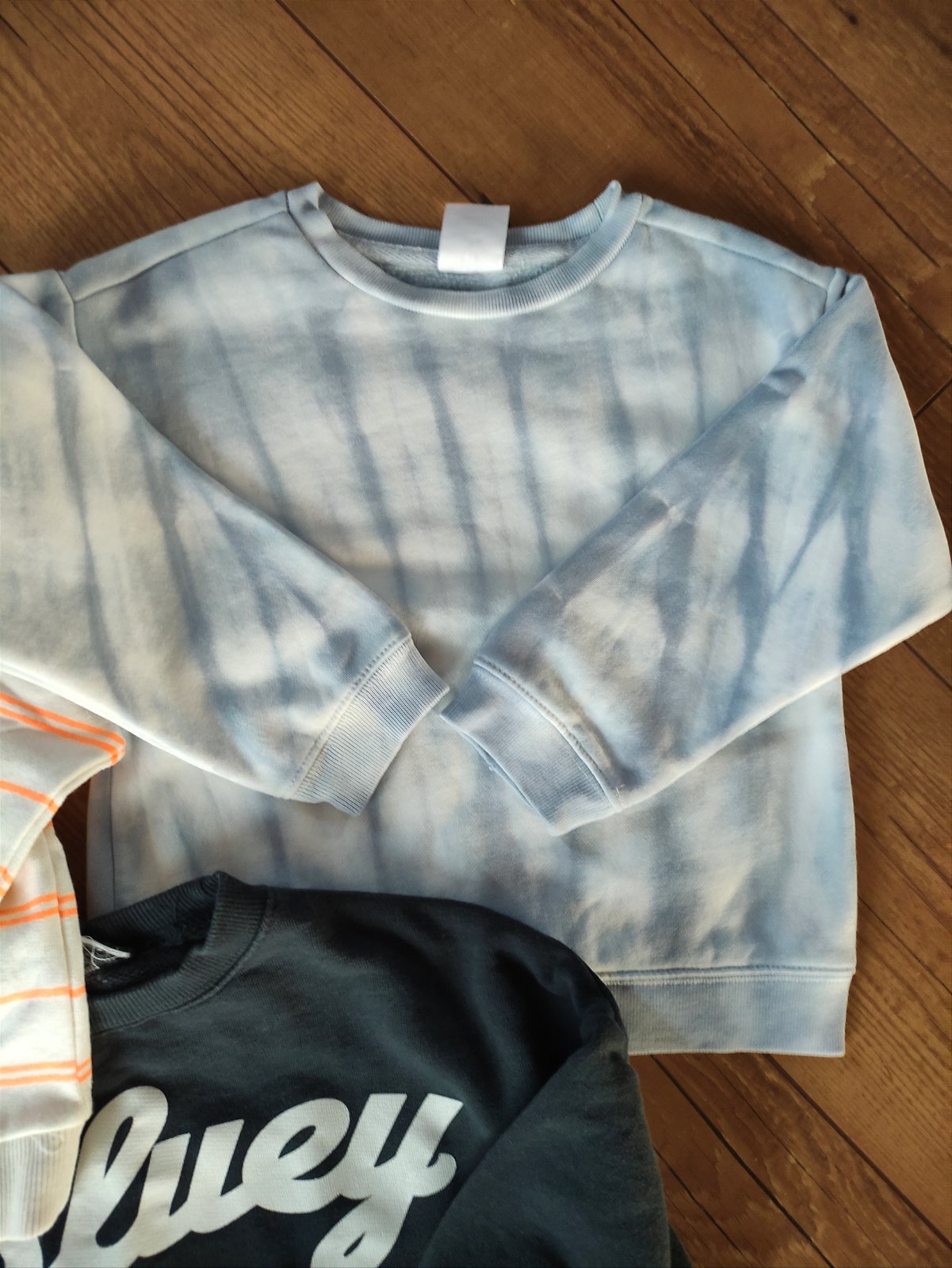 3x mikinka, pásikava Zara super stav, párkrát vzatá, tmavomodrá tiež Zara a batikovana Gap tiež málo nosená.Predaj spolu