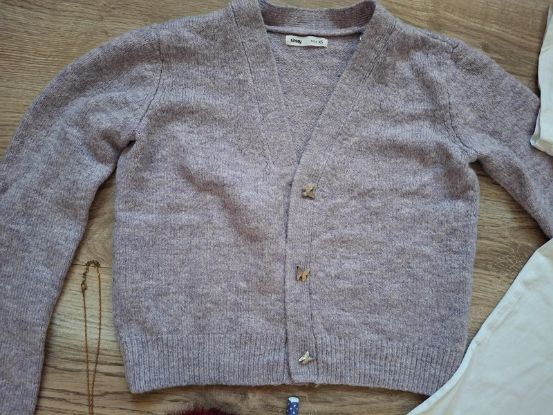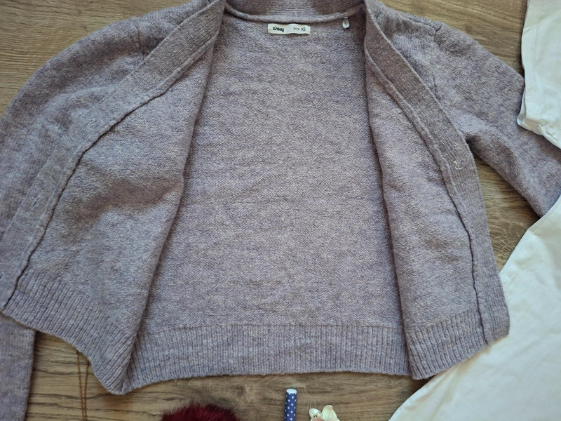 Ako nový, oblečený dvakrát, bez chybičky, má iba odstrihnutý vnútorný štítok na boku. Veľkosť je uvedená dámska XS, skôr sedí na dievčenskú 164,/170, šírka 44cm, dĺžka 44cm, rukáv 55cm. Značka sinsay.