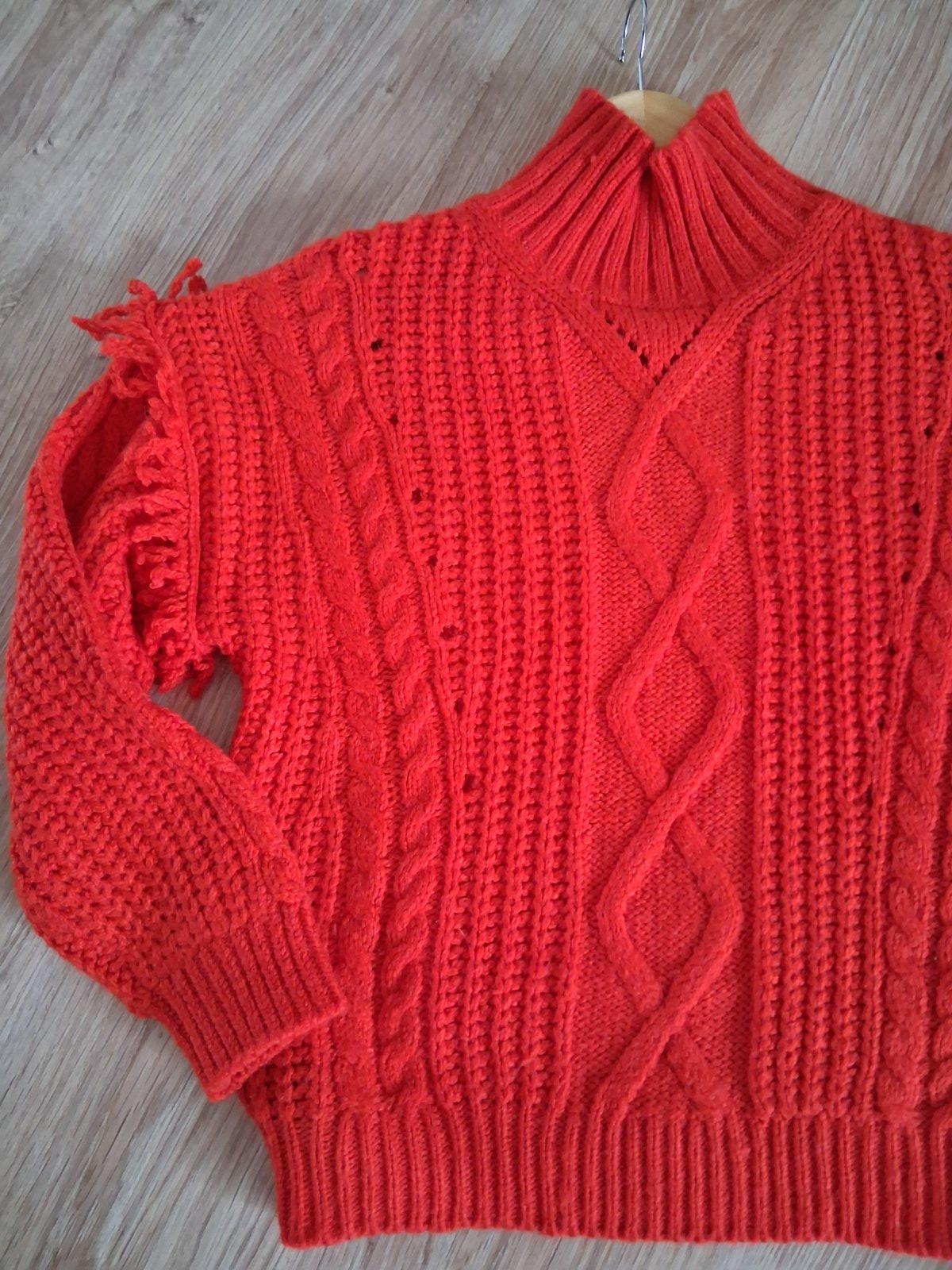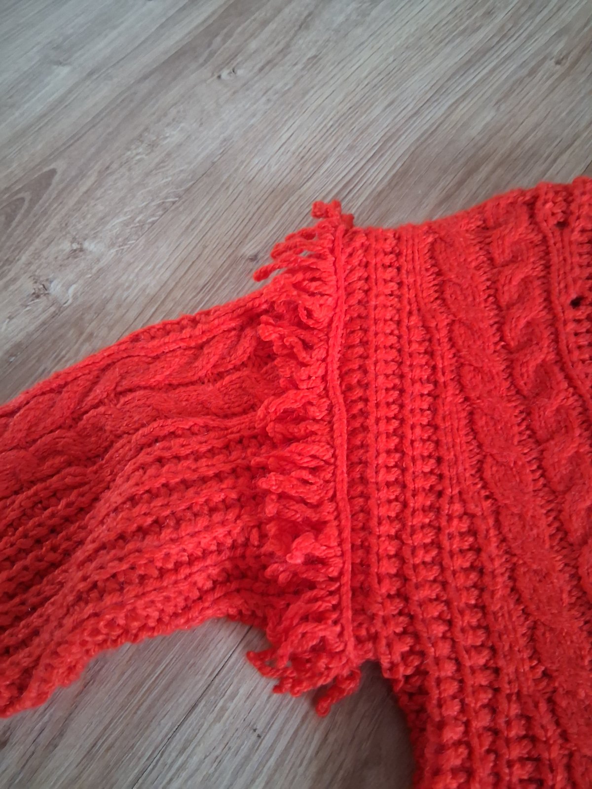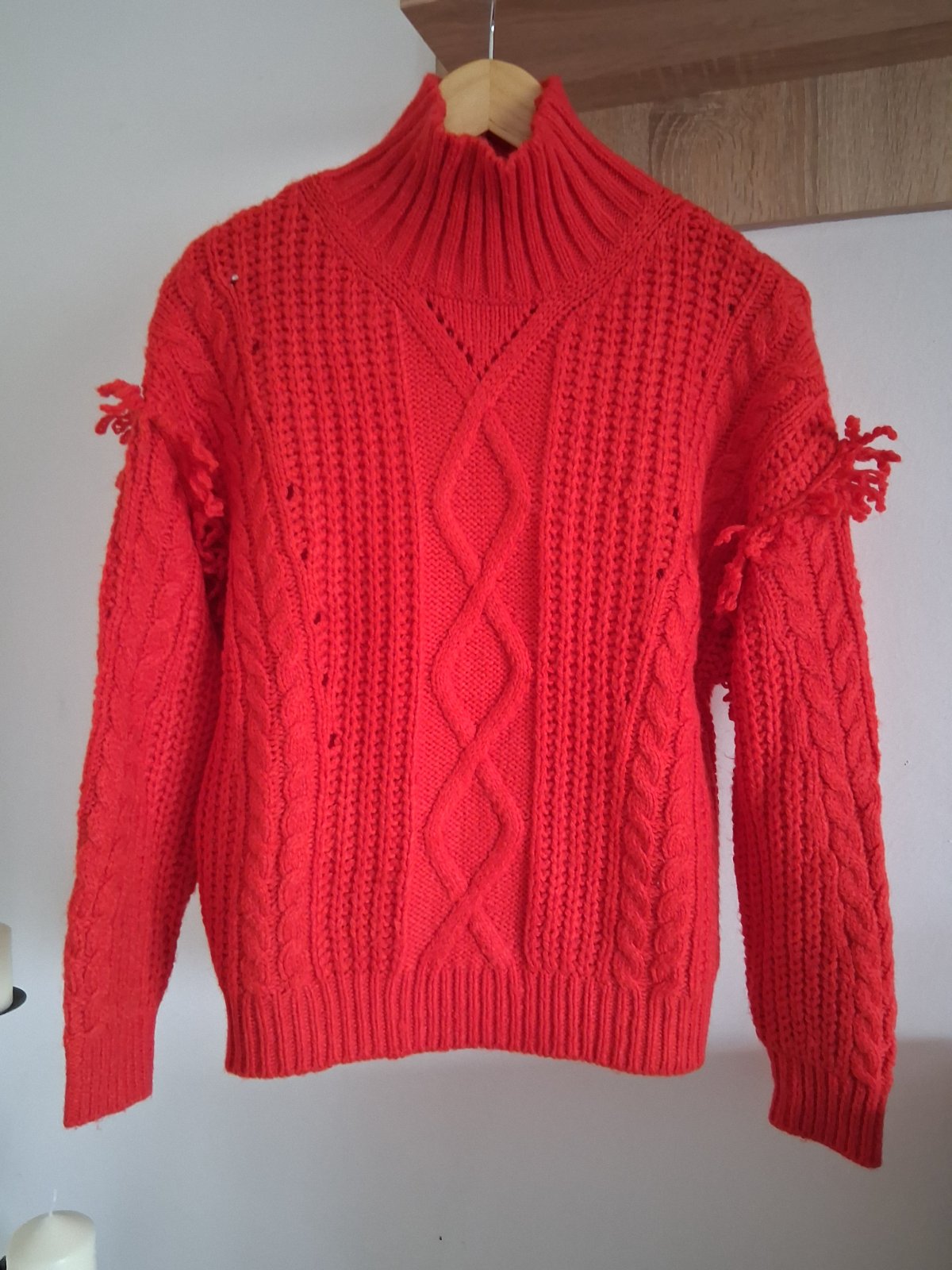 cardigan sýto červenej farby, pekné detaily, zn. mango, veľkosť S, dĺžka cez chrbát 55cm.