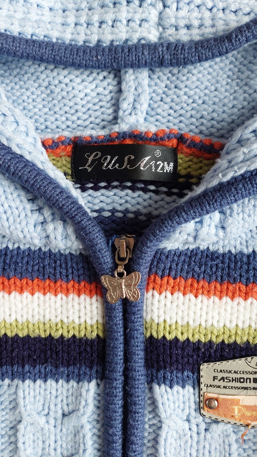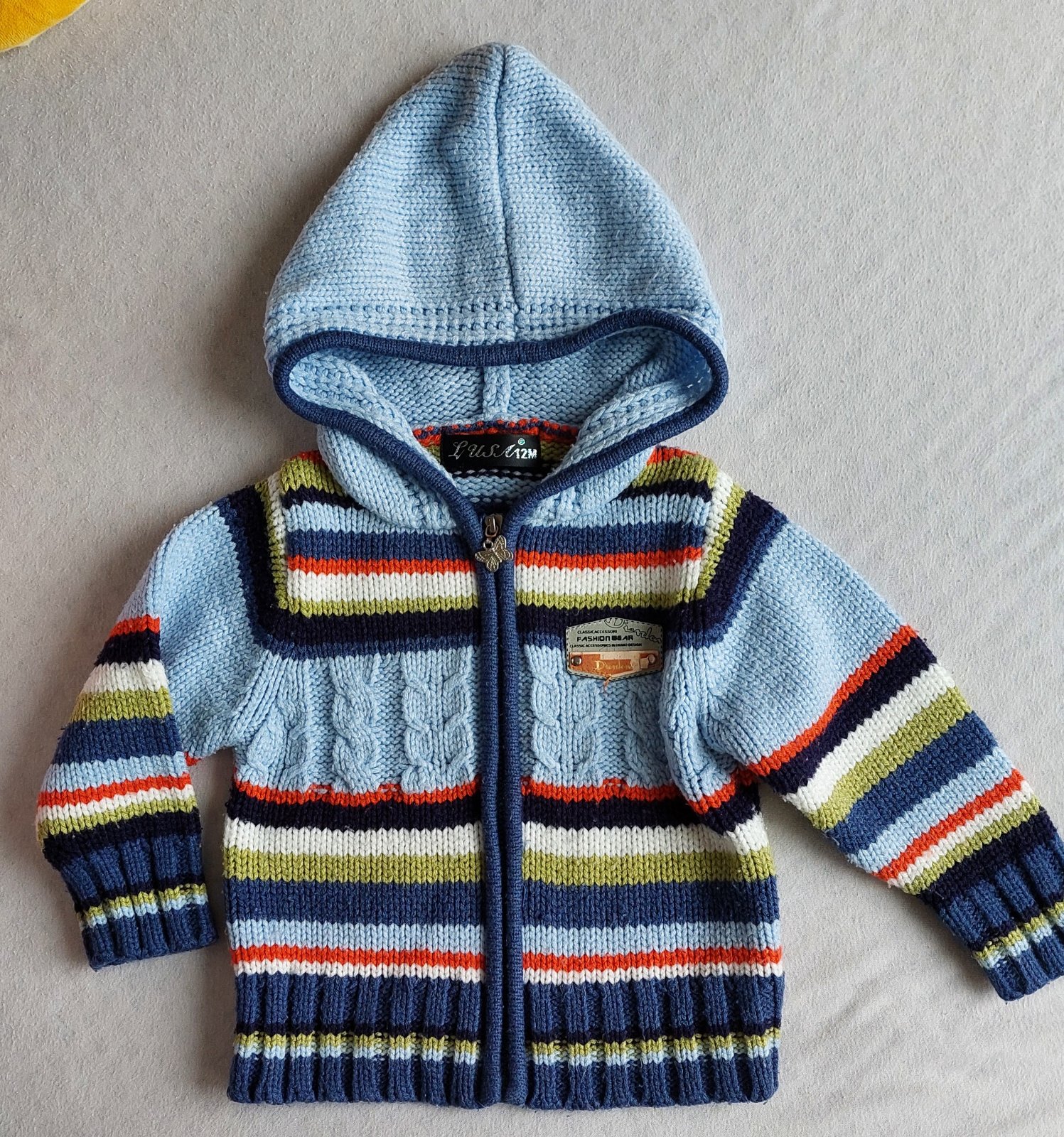 Krasny pasikavy svetrik so zapinanim na zips