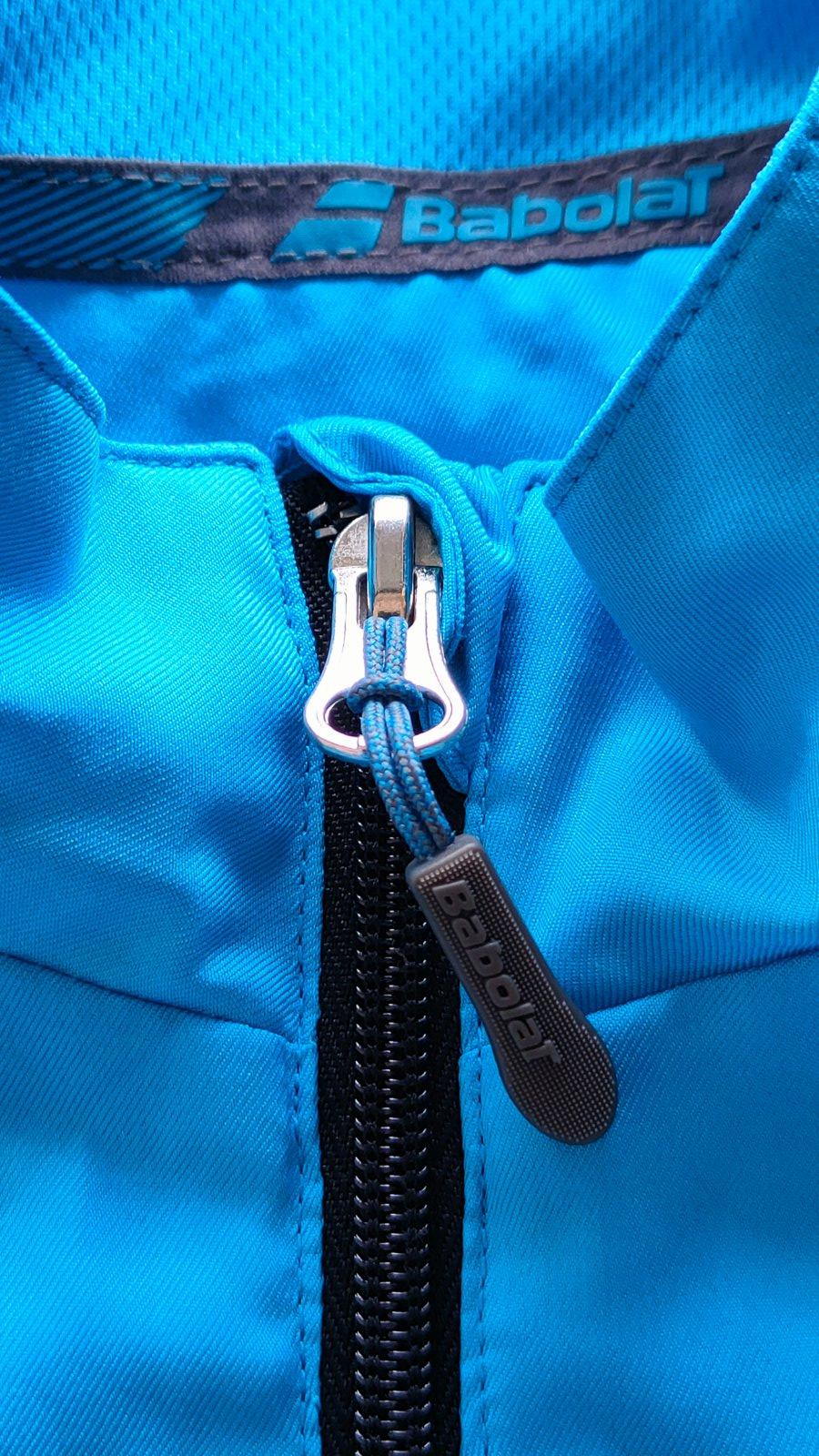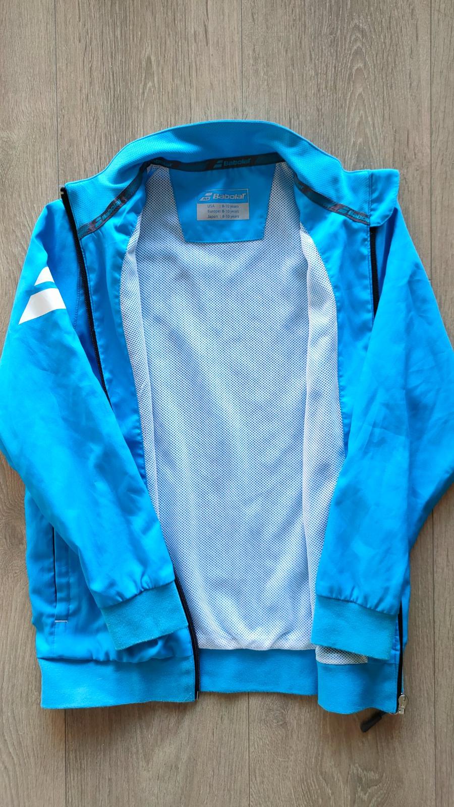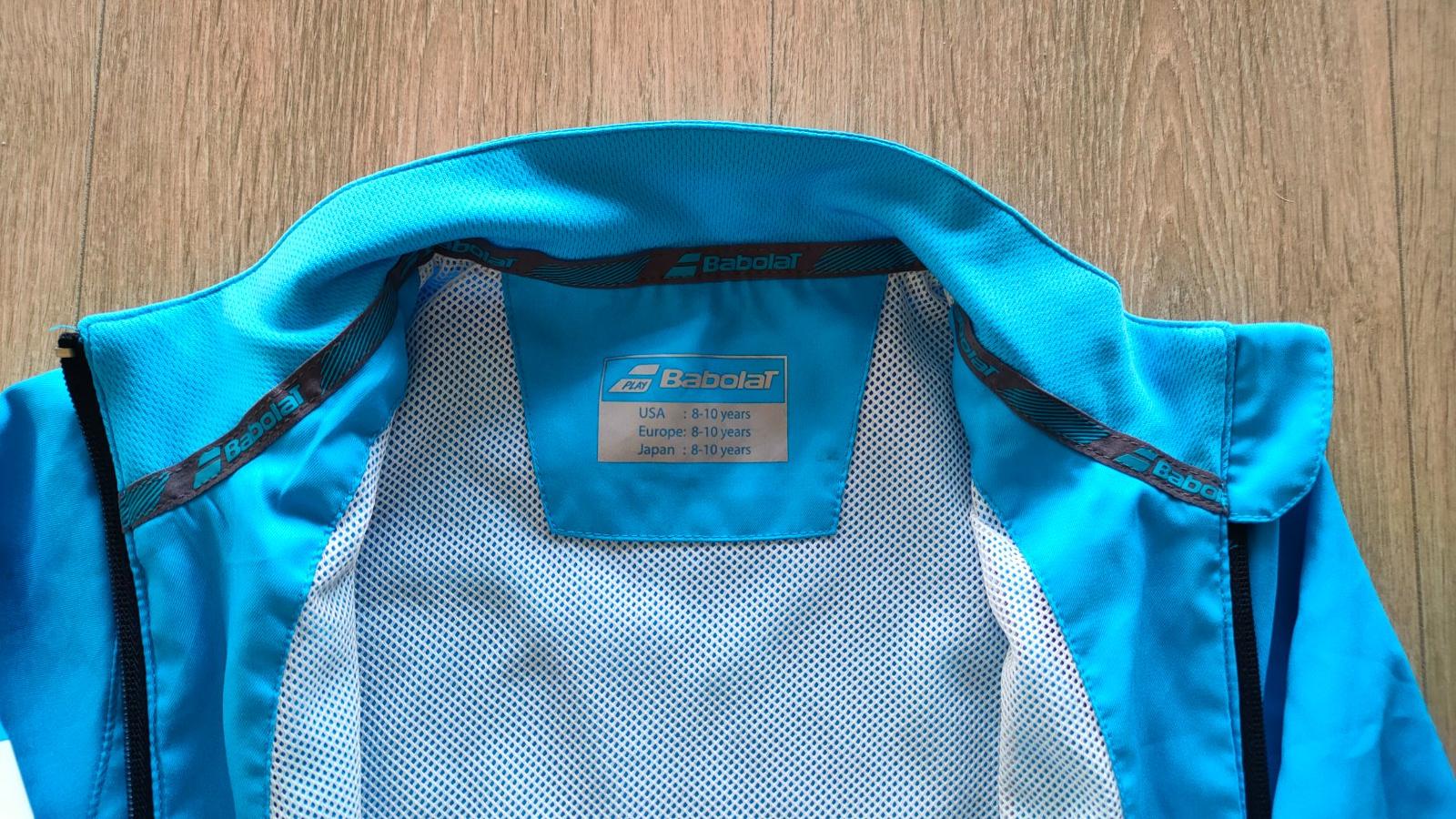 Nádherná ľahká športová mikina zn. Babolat (play), veľ.8-10 r. Rýchloschnúci materiál, predĺžené zapínanie na zips, zapínacie vrecká na oboch stranách, rukávy aj dolná časť ukončená gumičkou, originálna potlač s logom Babolat. Priedušný ľahký materiál, málo používaná. Vhodná pre chlapca aj dievča.