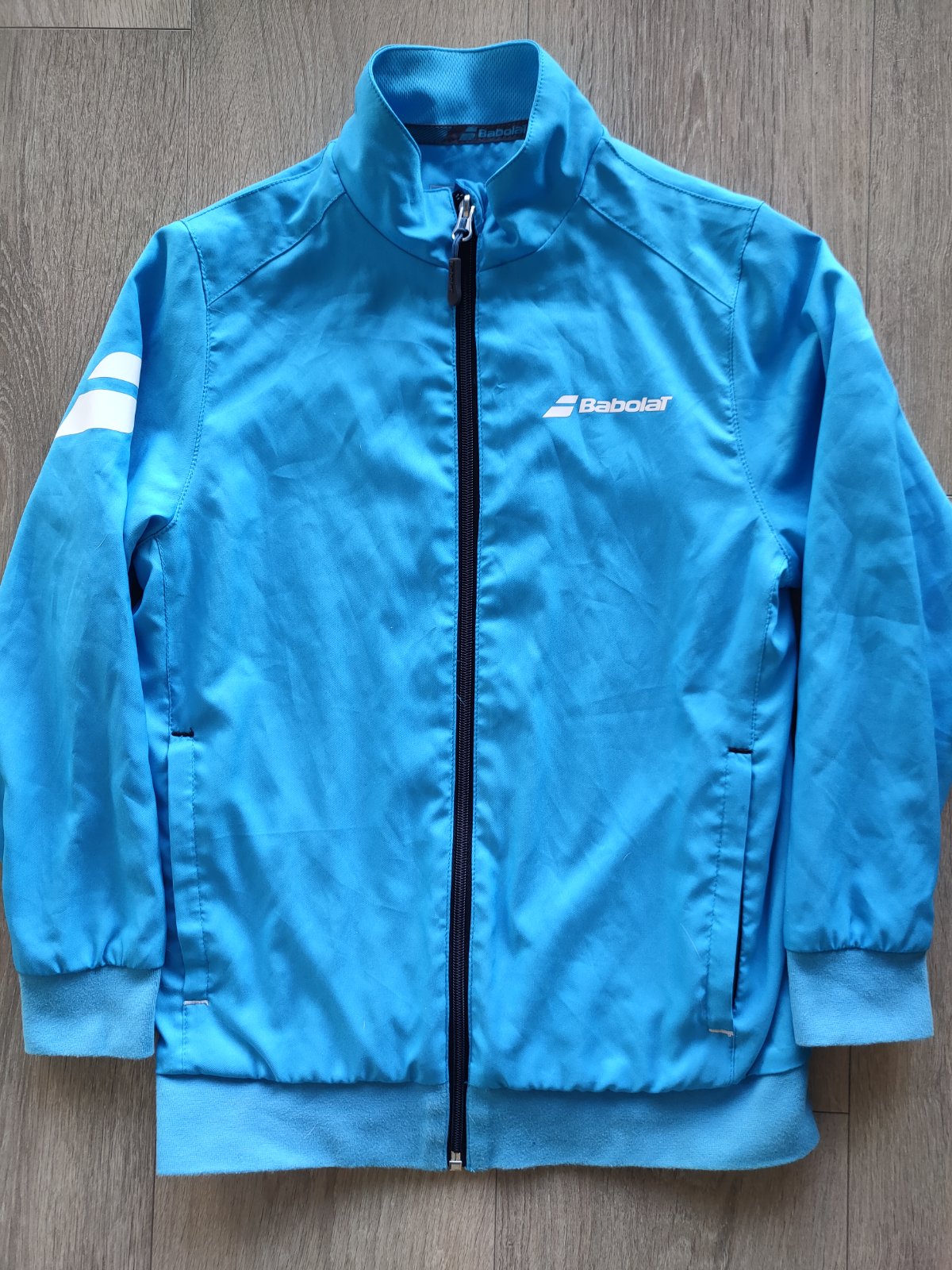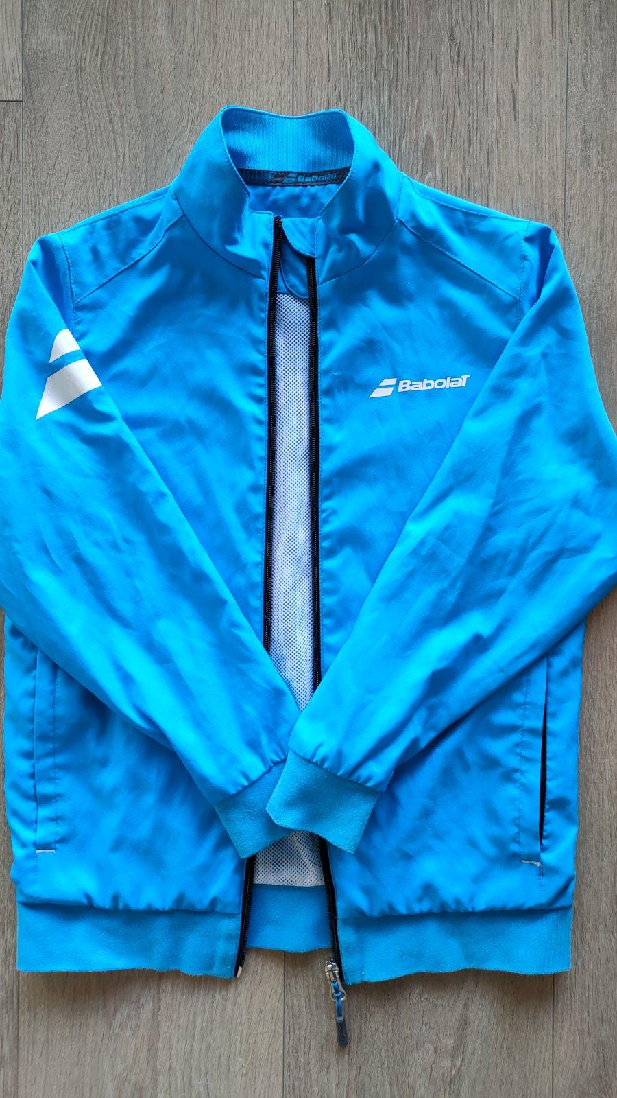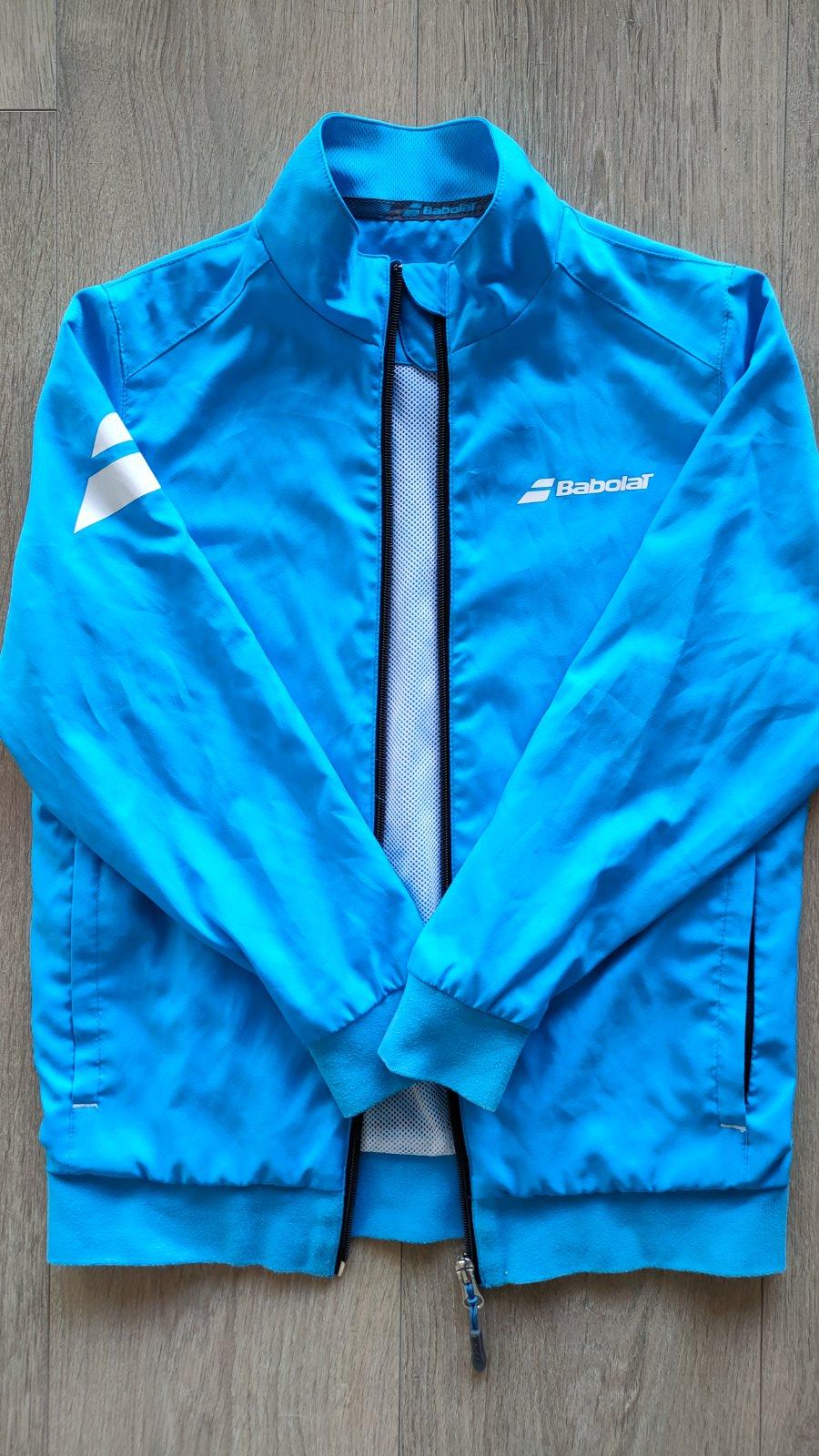 Nádherná ľahká športová mikina zn. Babolat (play), veľ.8-10 r. Rýchloschnúci materiál, predĺžené zapínanie na zips, zapínacie vrecká na oboch stranách, rukávy aj dolná časť ukončená gumičkou, originálna potlač s logom Babolat. Priedušný ľahký materiál, málo používaná. Vhodná pre chlapca aj dievča.