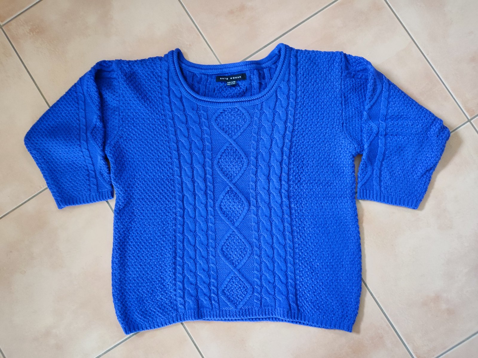 Tenký krátky svetrík. Veľkosť S/36 ale je oversize. Je presvitny, krátky rukáv . Nosený na tielku.