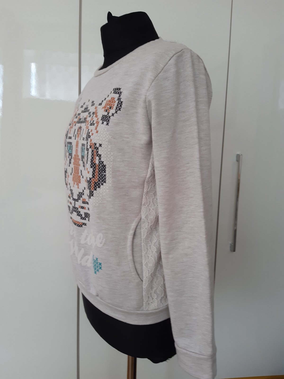 Pekná mikina s aplikáciou. Dl. 56 cm, dl. rukáva 61 cm, šírka cez prsia 49x2 cm. Materiál je 70% bavlna, 30% polyester. Mikina je vo výbornom stave, bez poškodenia. Pri nákupe nad 10€ darujem na vyžiadanie.