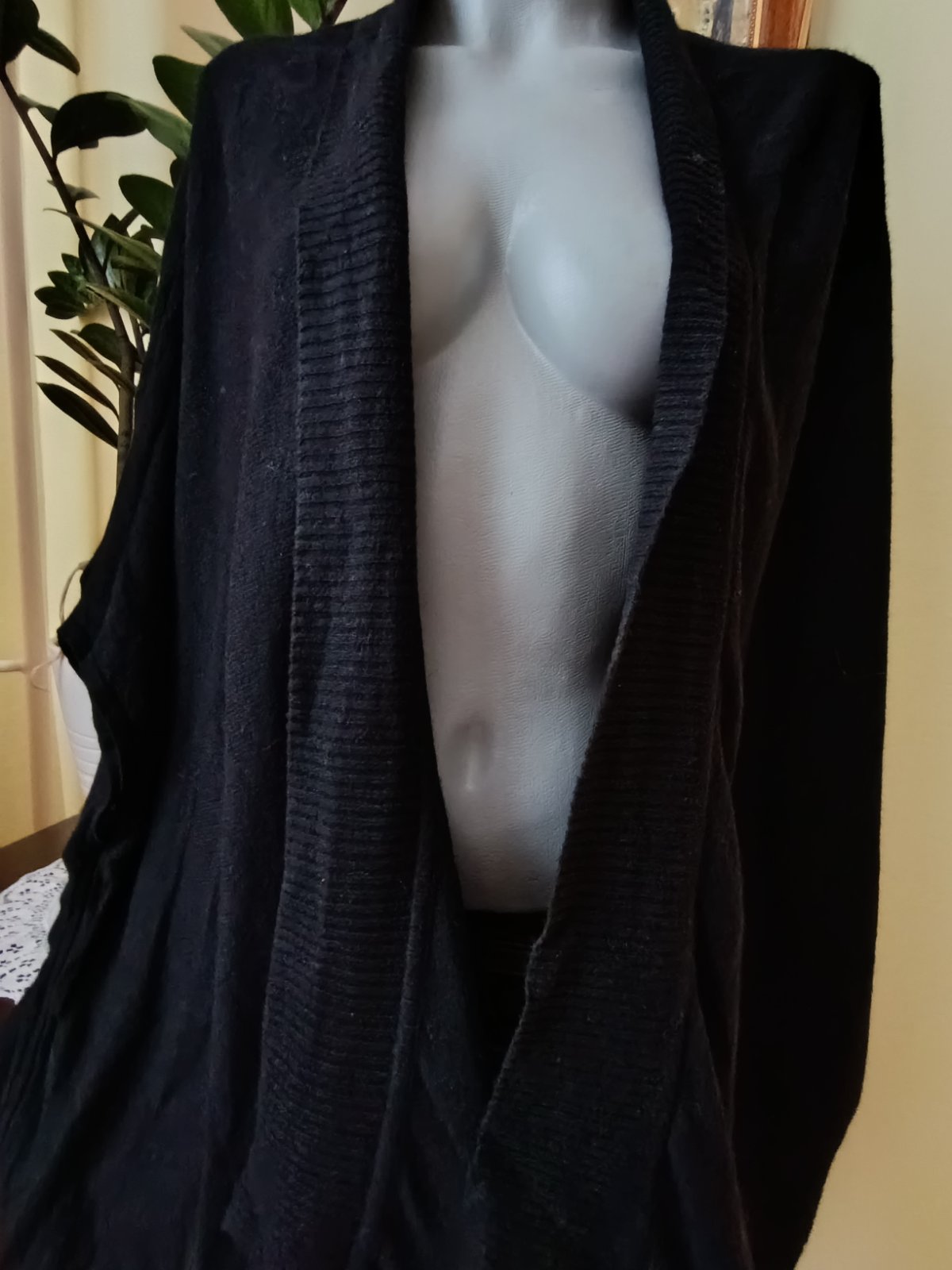Talianska ležérna vesta s podielom vlny, angory a kašmíru.Kratsi a veľmi sirokystrih .Stojí mi v skrini, nenosené. Šírka 86 x2, dĺžka vpredu 59, vzadu 70, tenší úplet