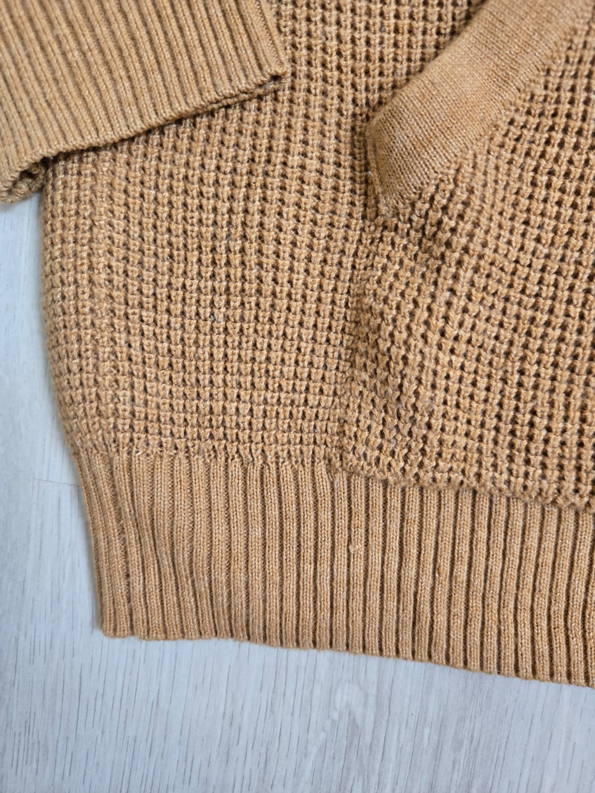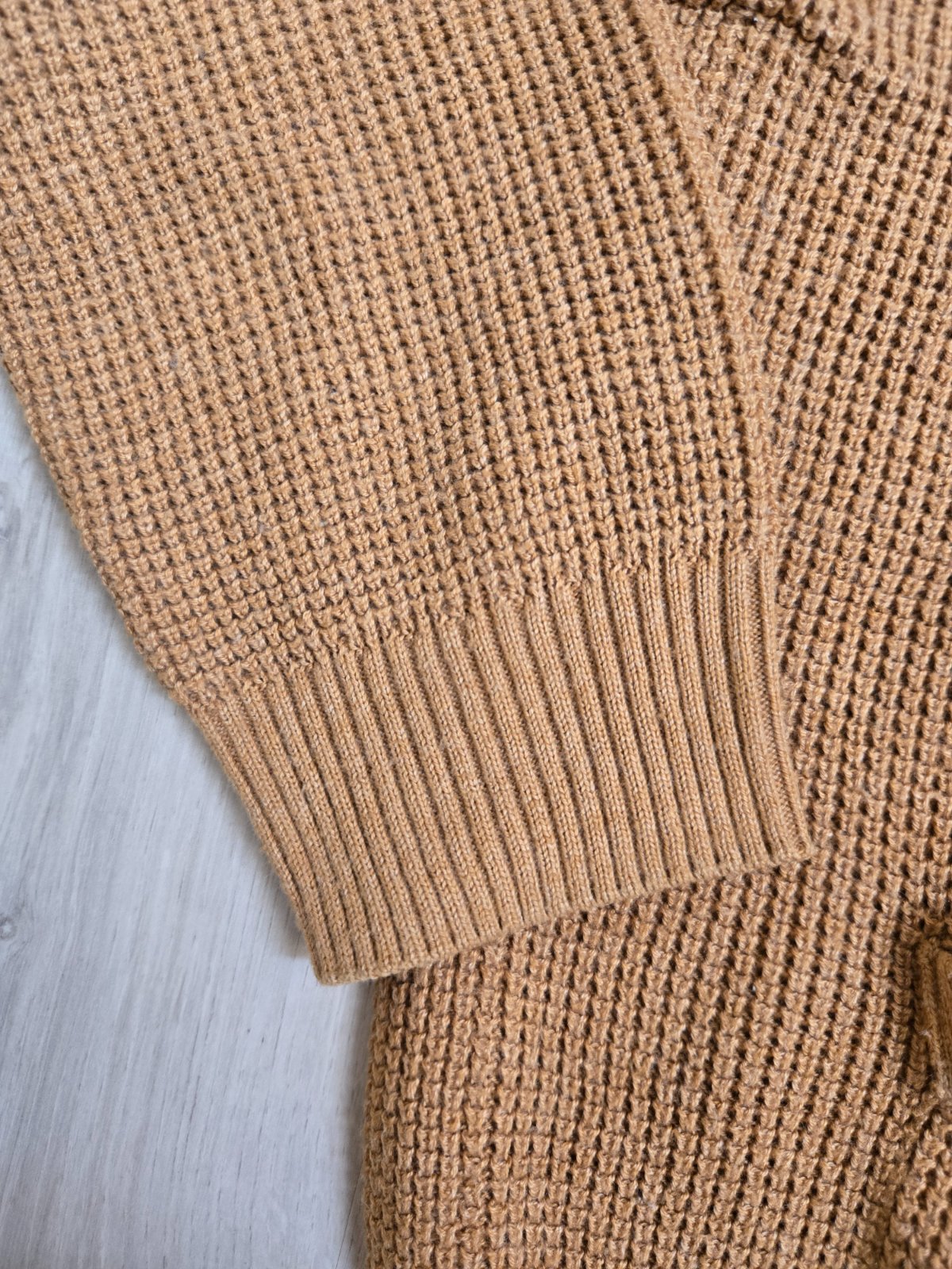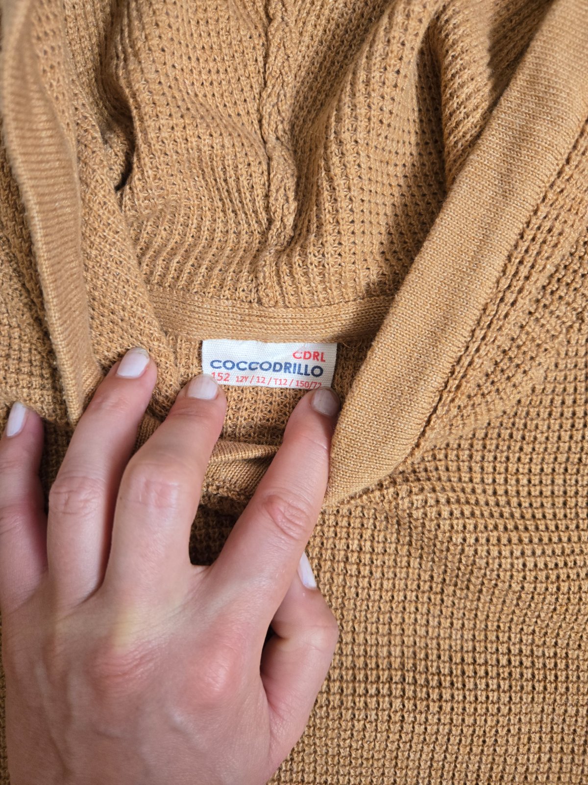 Tento karamelový svetrík je vo výbornom stave, je to taký elegantný kúsok, veľmi pekný a moderný. Bol použitý len jeden krát a to na fotenie. Je v 100% stave a je to 100% bavlna. Určite odporúčam. Rozmer: dl.68cm, šírka 2x47cm, rukáv 55cm. Kvalitná značka coccodrillo hovorí za všetko, naozaj krásny kúsok.