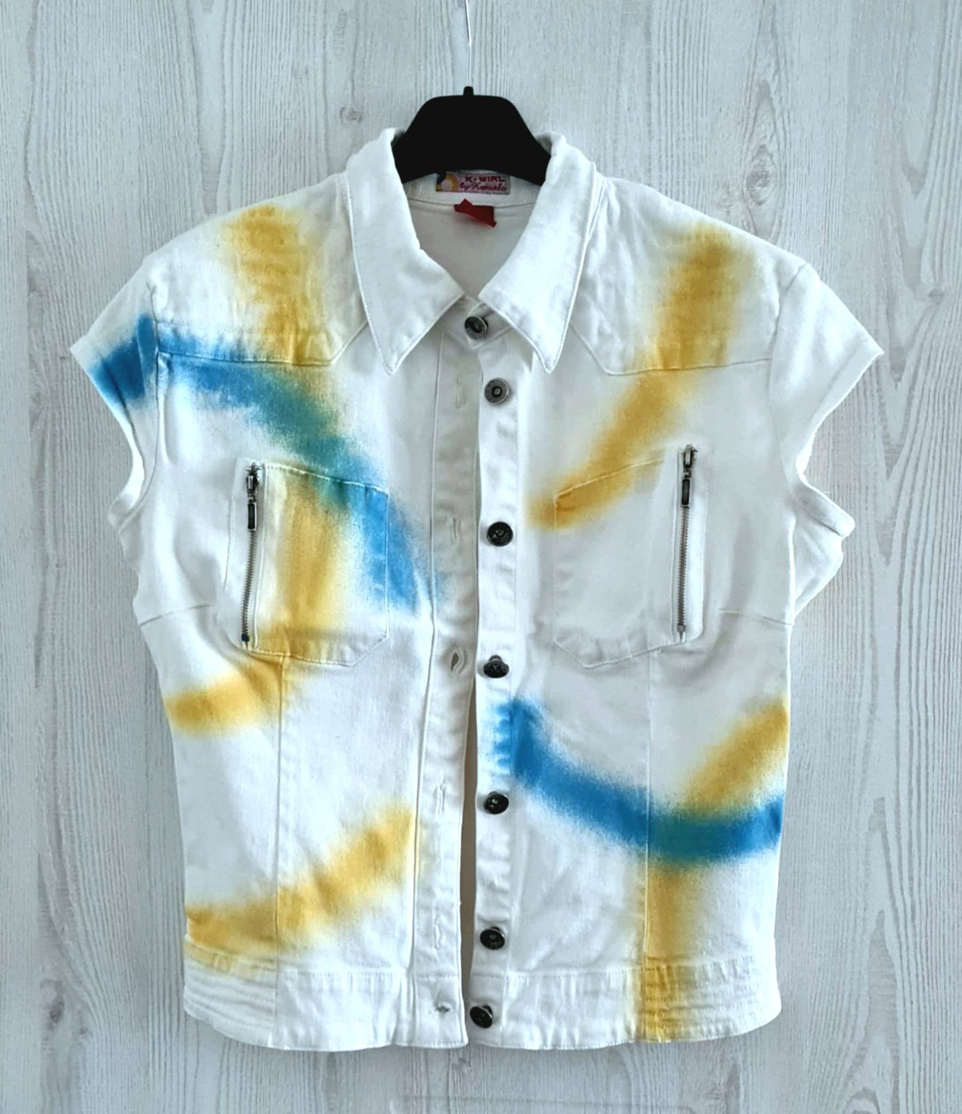 Vesty sú háčkované,retro,ale zachovale Biela šírka 46 dĺžka 56 Krémová 41 dĺžka 49,krémová je v zadu na spodu zasivana,veľmi to nevidieť,je to na foto. Biela 6 eur.kremova 4,spolu 9.