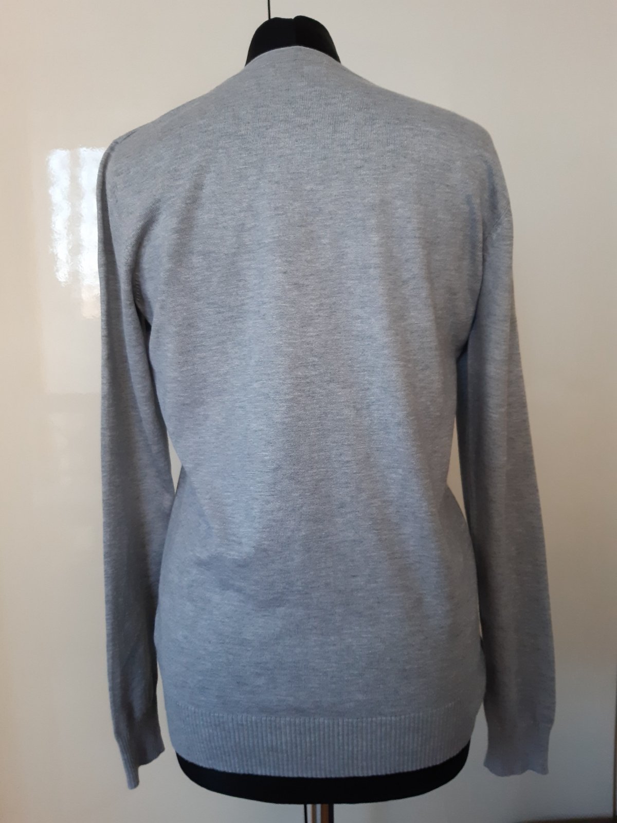 Pekný, dobrej značky sveterna zapínanie. materiál 80% viskóza, 18% polyamid, 2% elasthan. Dl.66 cm, dl. rukáva 66 cm., šírka cez prsia 48x2 cm. Sveter je vo výbornom stave, nebadať známky použitia.