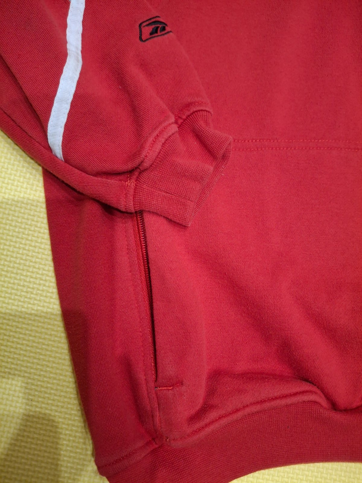 Športová mikina,konkrétne z hokejovej kolekcie, ale využije ktokoľvek nielen hokejista . Vo veľmi dobrom stave, bez dier a flakov. Bavlnený materiál. Veľkosť udavana 140 , ale syn nosil d9 veľkosti 152. Celková dlzka 58 cm , dĺžka rukáva 59 cm s manžetou,šírka pod pazuchami 53,5 cm. Vrecka sa dajú zipsovat.
