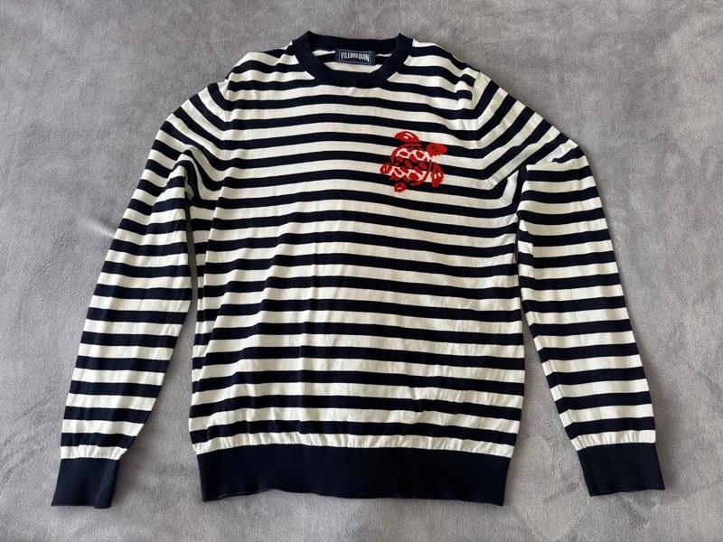 Pásikavý sveter Vilebrequin s ikonickou červenou k