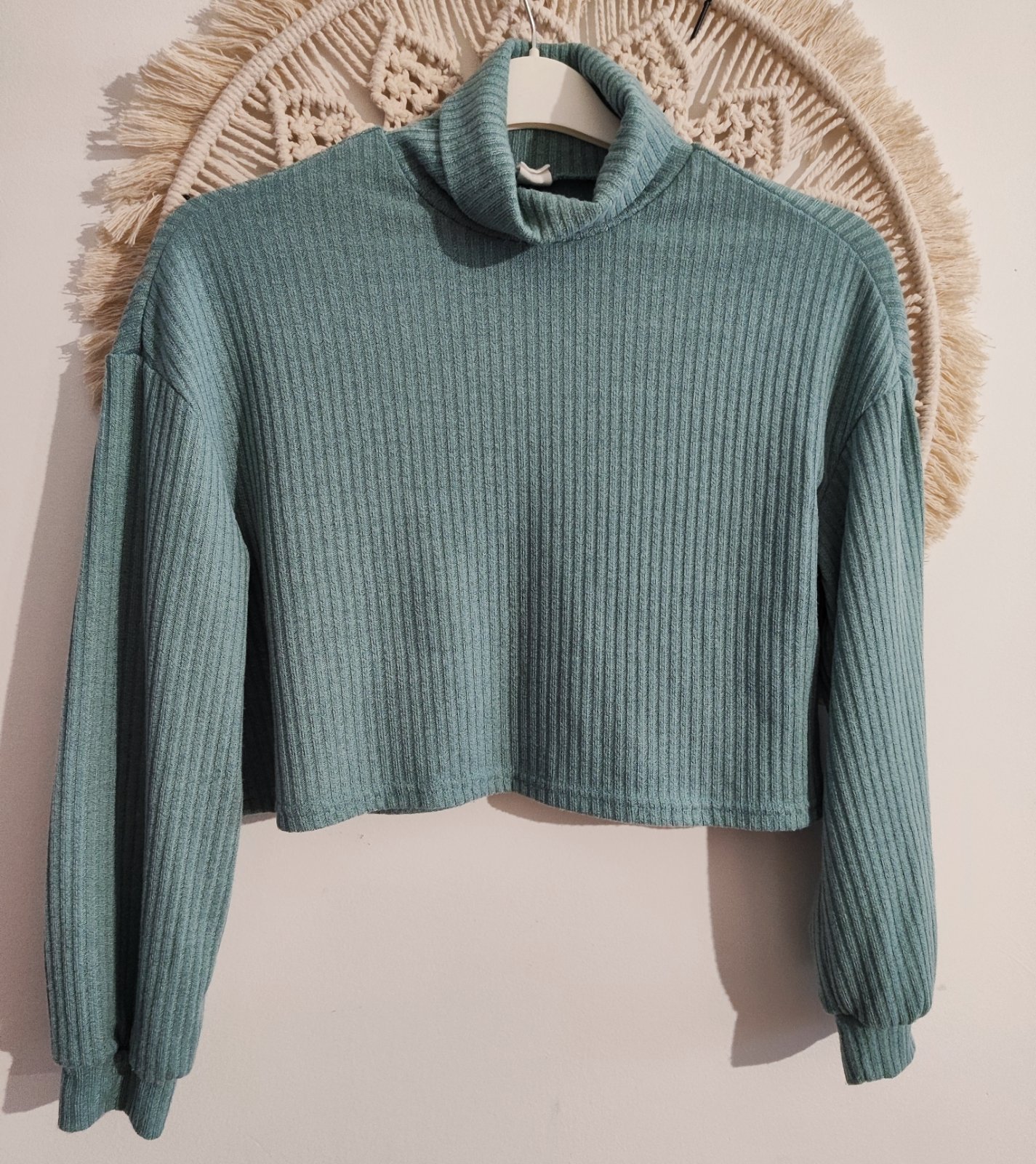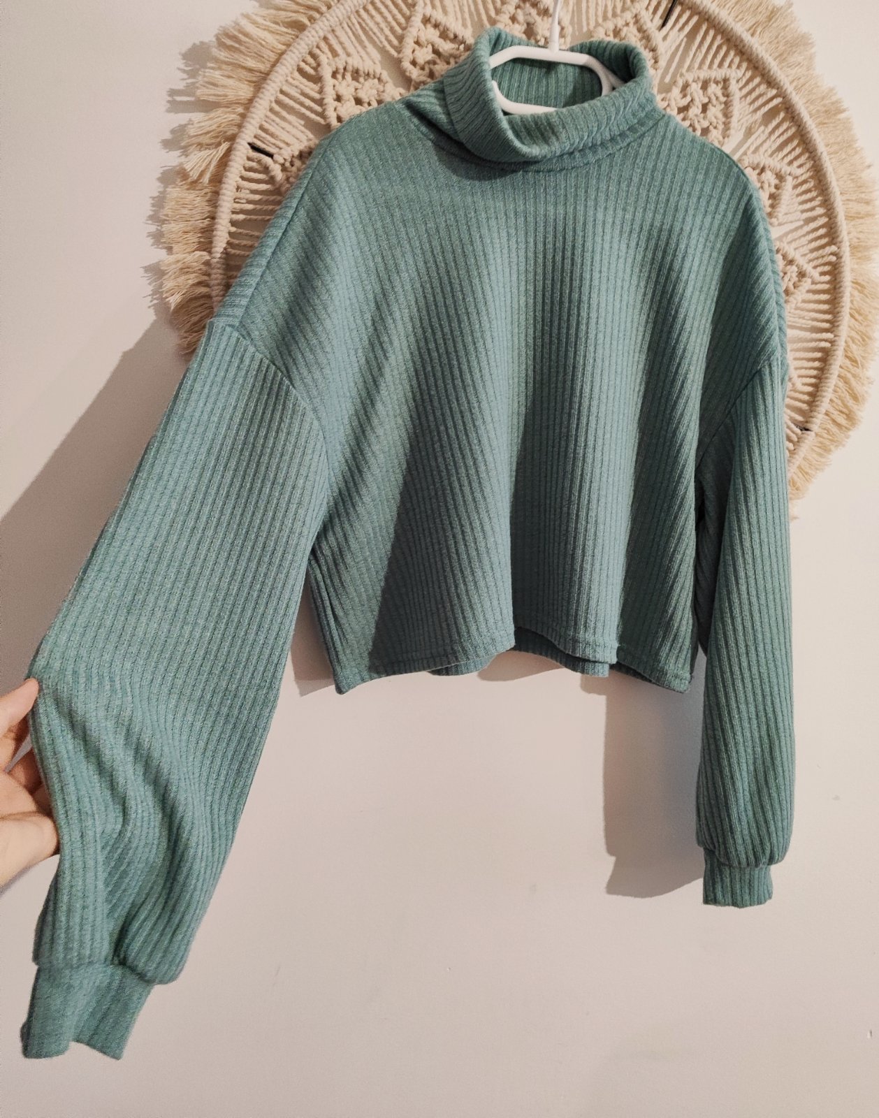 Dievčenský mätový sveter.