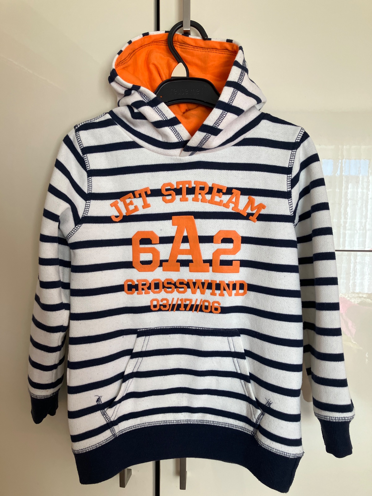 Príjemne mäkká mäkká mikina, bez dierok, má len bežný chĺpok z prania. Jeden mini bledomodrý fliačik (asi od pera ) pri čísle 6- viď foto