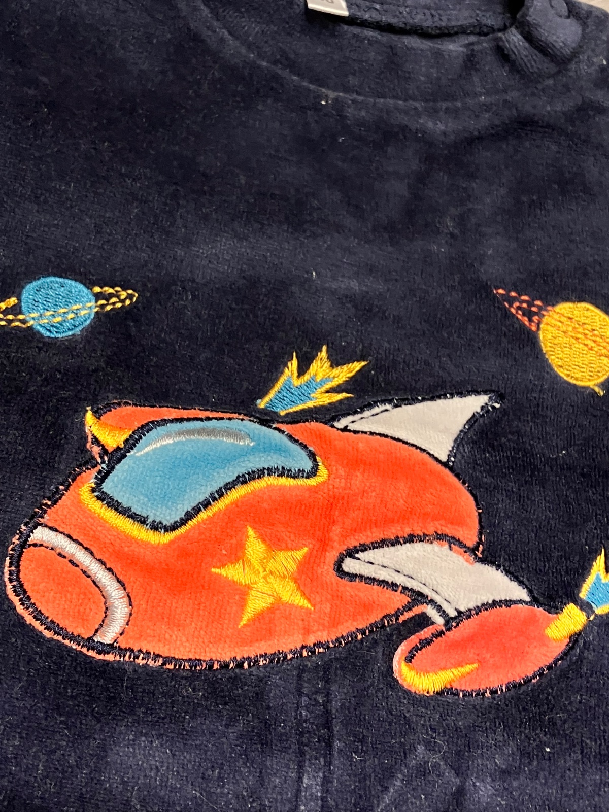 Chlapčenská mikina, zamatová, elastická, tenšia, zapínanie na ramene na dve cvoky, so vzorom, materiál 80%bavlna 20%polyester.