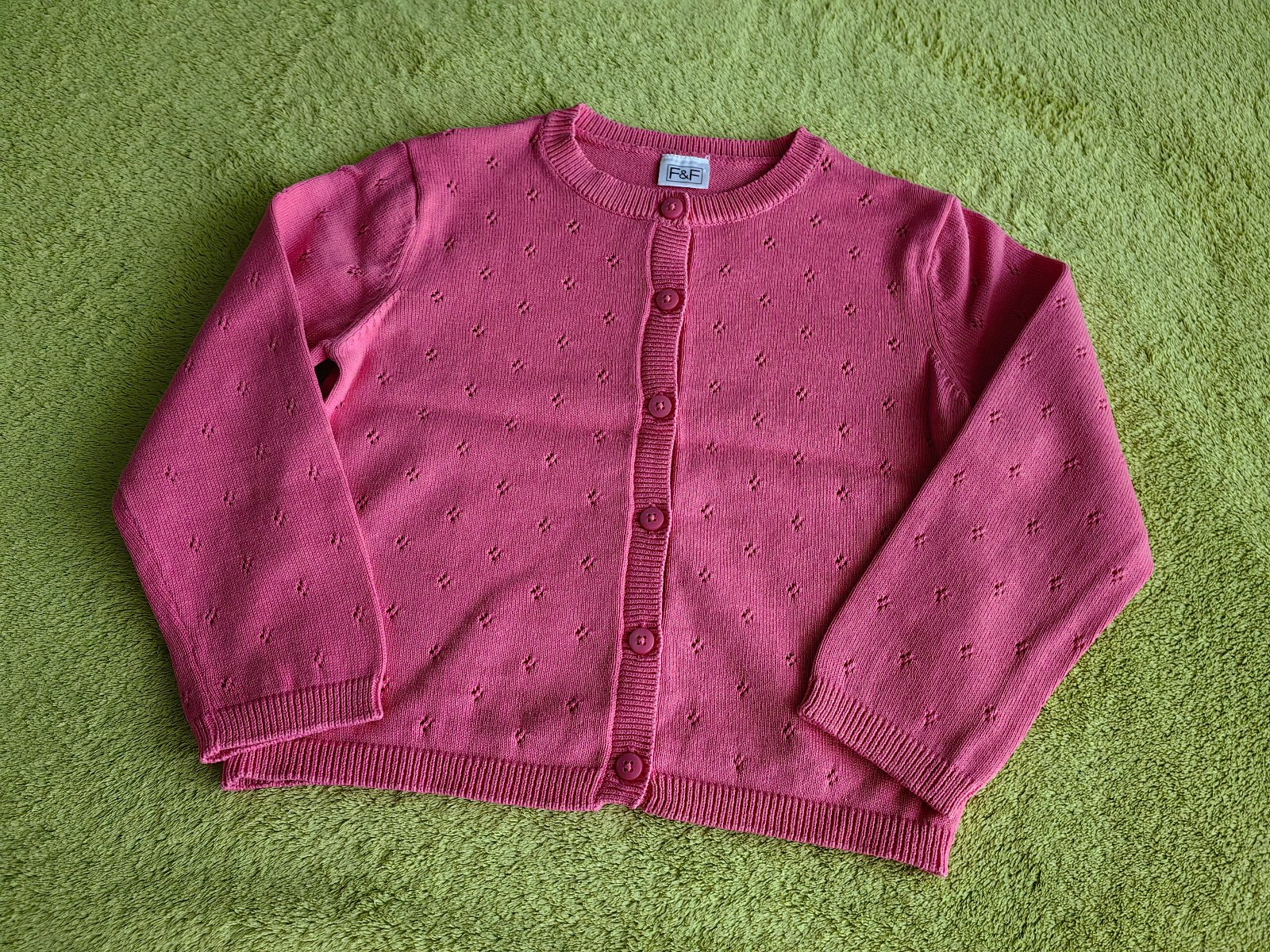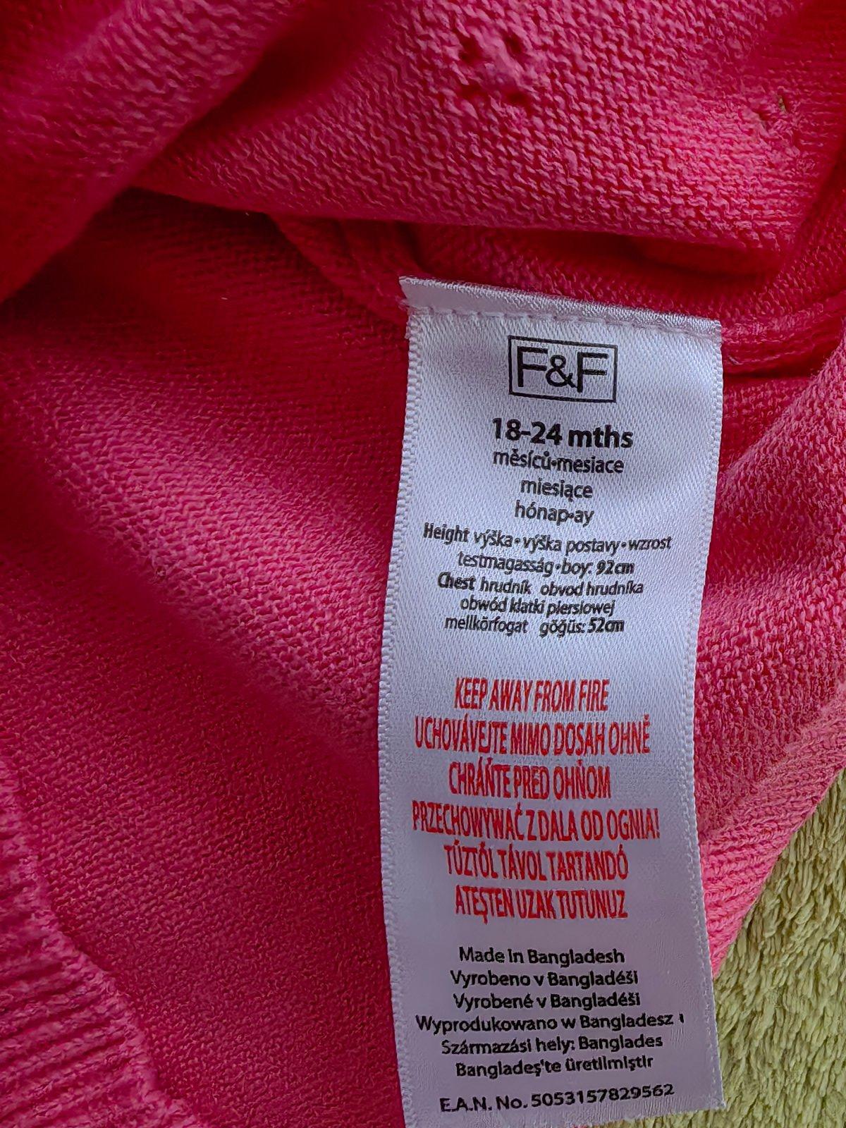 Raz oblečený svetrík značky F&F, s top stave. Písaná veľkosť na 18-24 mesiacov. Zloženie 100% bavlna. Osobný odber v Bratislave, alebo poštou, poštovné nie je zahrnuté v cene.