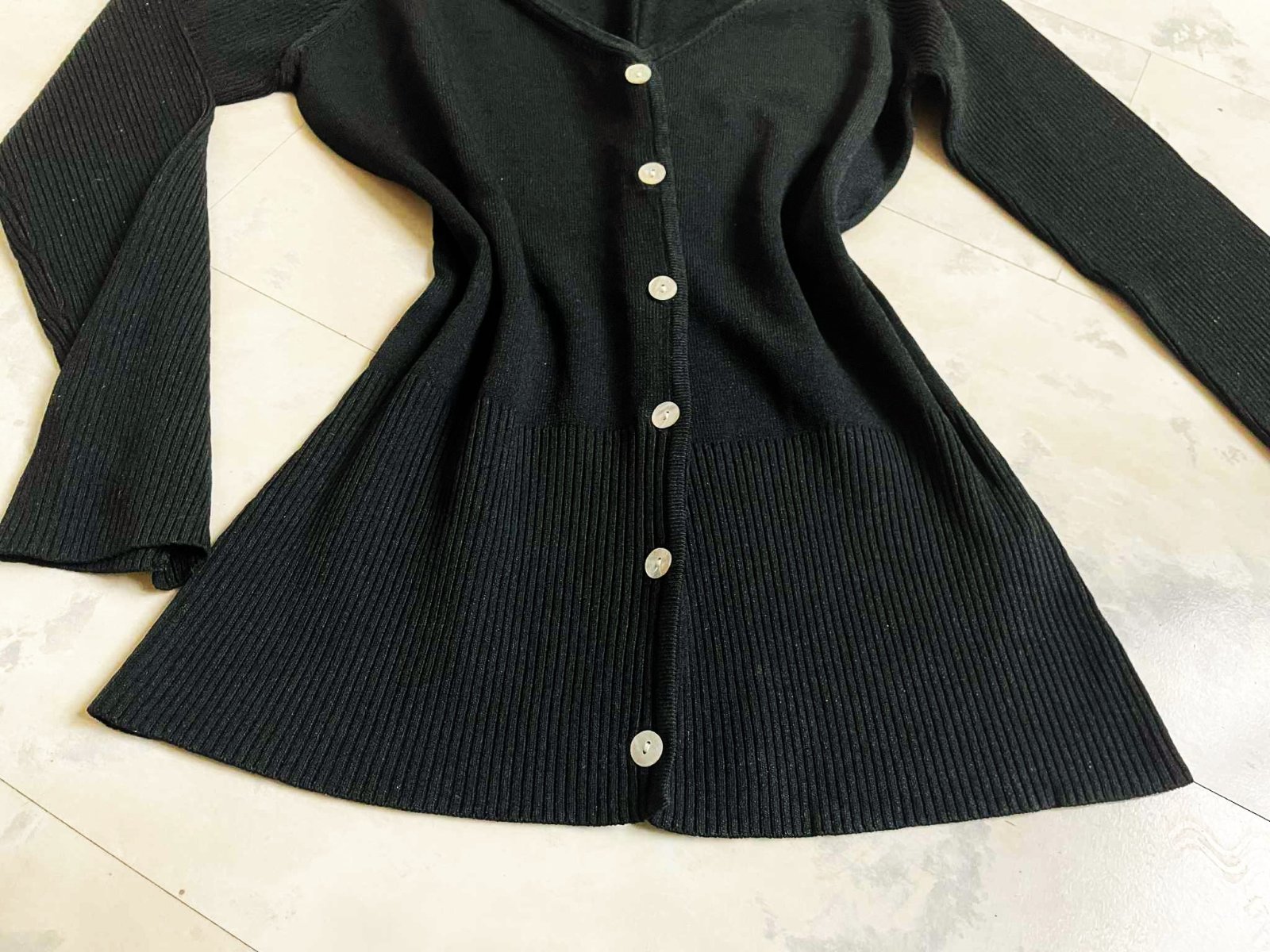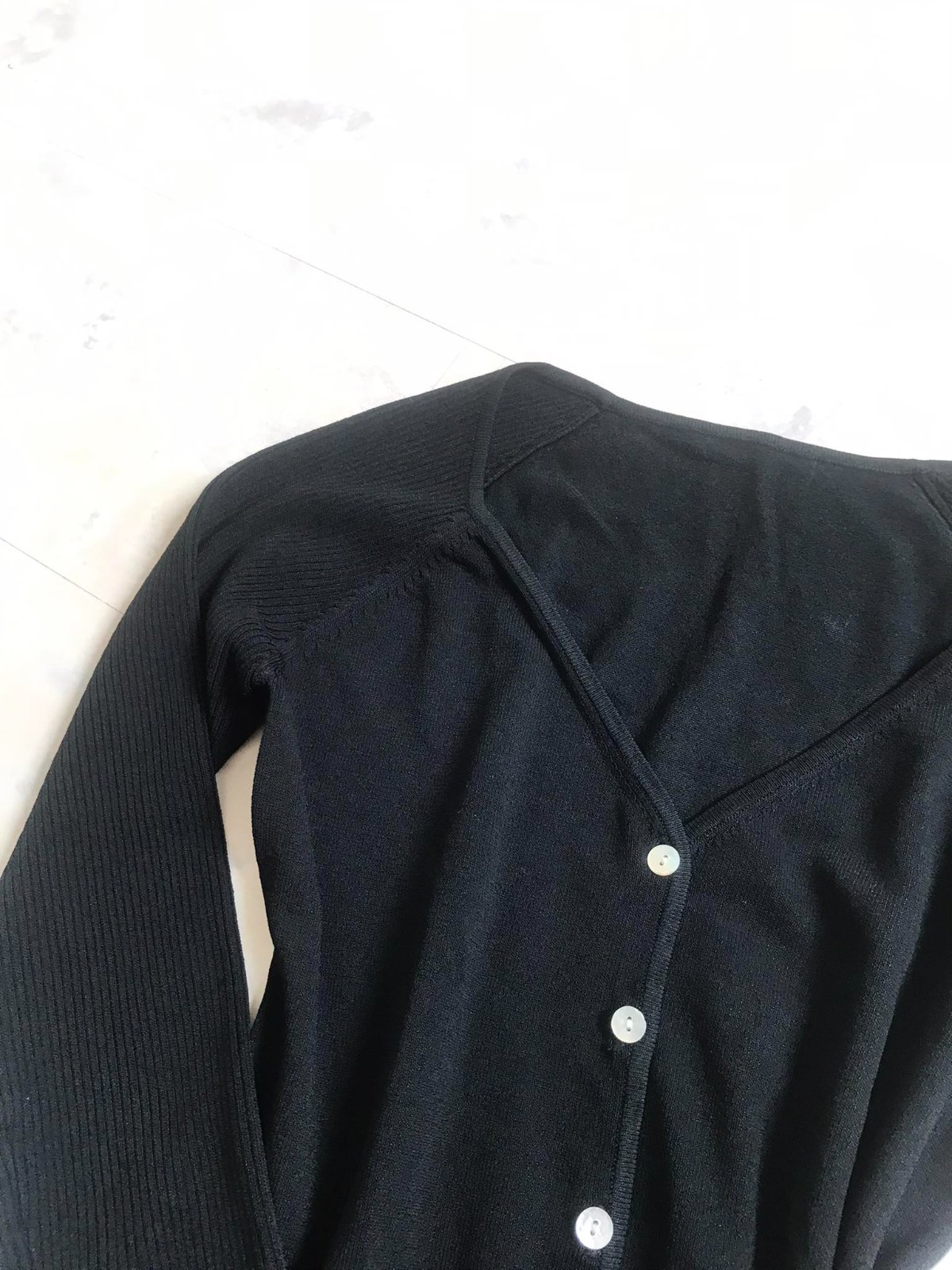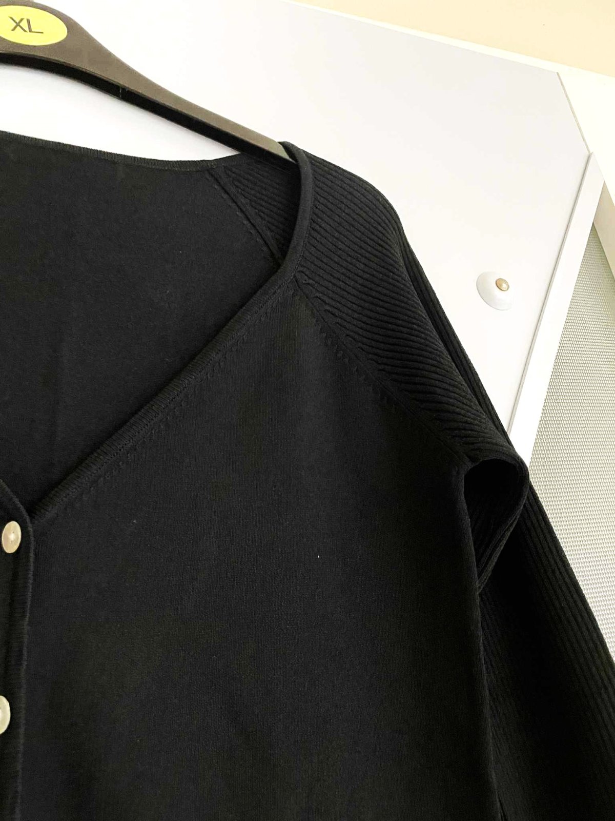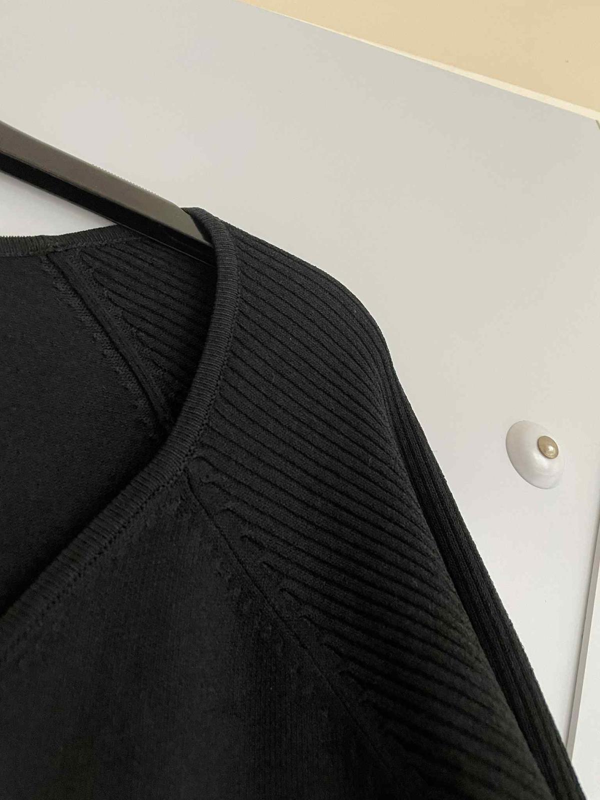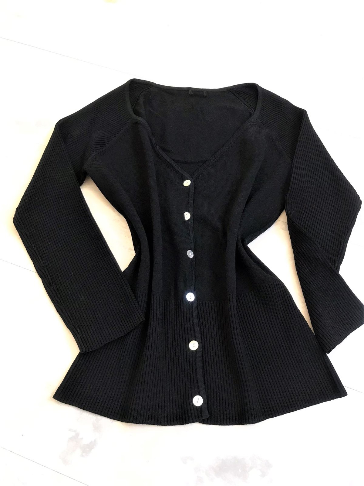 sýtočierny krátky svetrík na zapínaie - perleťové gombíky,krásne riešený,vysoké rumby,3/4 rukáv,top stav,raz opraný,materiál = 54 rayon,46 % nylon,poddajný,šírka meraná pod pazuchou = 41 x 2 cm,dlžka celkom = 55 cm, dlžka meraná na boku od pazuchy smerom dole = 38 cm,vn. dlžka rukáva = 33,5 cm, vonk. dlžka rukáva ( raglánový rukáv ) meraná od výstrihu = 50 cm,